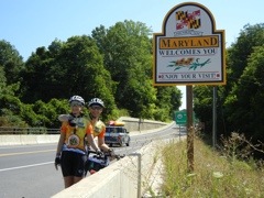 We get shade and some curvy, twisty downhills on our way to the Potomac River and the C & O canal path, a 185-mile trail that goes all the way to Washington DC. We opt to ride on the road that parallels the trail as our bike is not suited for the loose gravel surface on the trail.