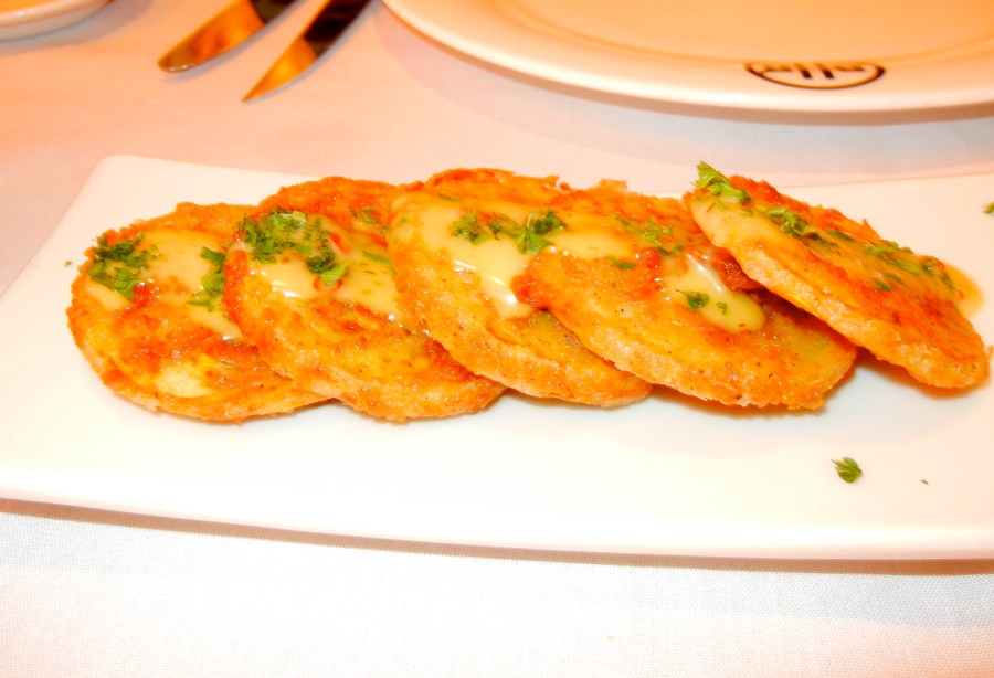 Because we are driving, we have to skip the beer list, which includes some local beers from the Chattanooga area. We decide to get an appetizer, a salad, a small plate and a side order. We start off with some fried squash, which our server Mallory tells us was just picked from a local farm.