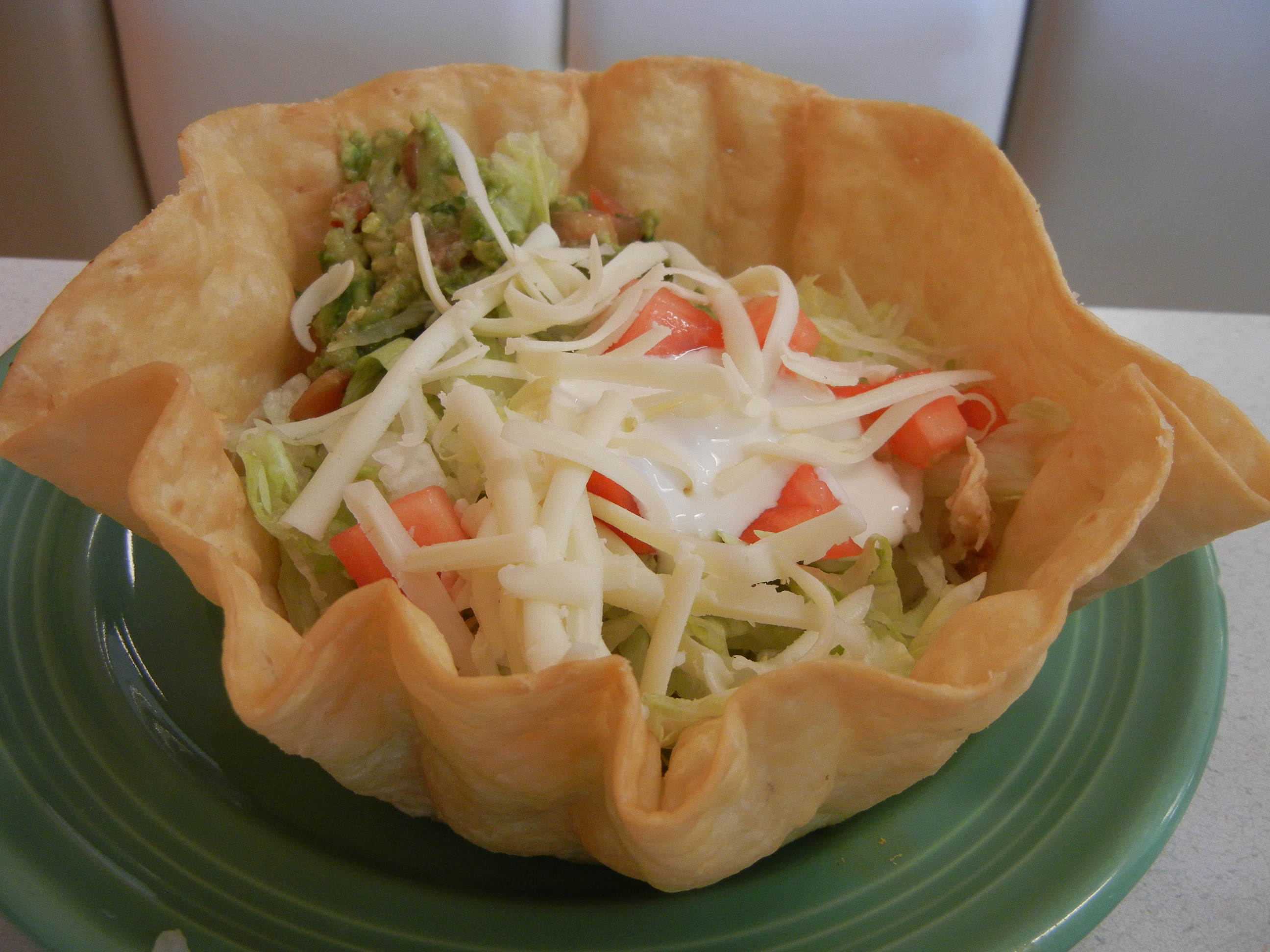 Since we have gone on way too long (future posts will be much shorter), here are a couple of pics of our dinners, a taco salad and a chicken quesadilla.