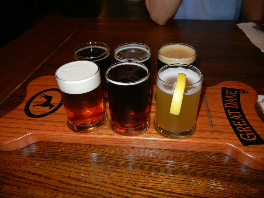 Late lunch/early dinner (is there a name for that?) is at a brew pub close to the capitol. The Great Dane has a sampler on the menu and we split six, four-ounce beers.