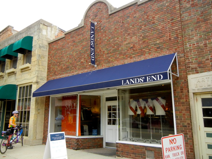 Today’s ride destination is Dodgeville, which savvy internet and catalog shoppers will note is the home of Lands’ End. (Yes, the apostrophe is in the right place.) Lands’ End has a huge company headquarters here as well as a small retail store on the main drag.