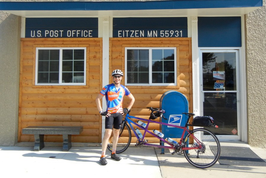 “Couldn’t you pick a better day to do this?” the wizened man asks me outside of the post office in Eitzen, Minnesota. “It’s going to be 104 degrees today. At least you have a breeze.”