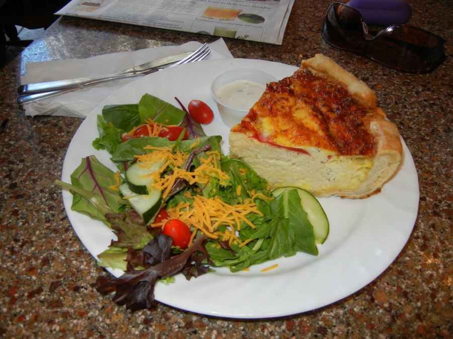 We stock up on cheese and even more beer (a Minhaus sampler box) before driving to St. Louis. For lunch, we stop in Bloomington, Illinois, which is a happening town. They have windmill farms all over the outskirts, a Mitsubishi factory, and State Farm Insurance. They also have a bakery/cafe that we found on Yelp.