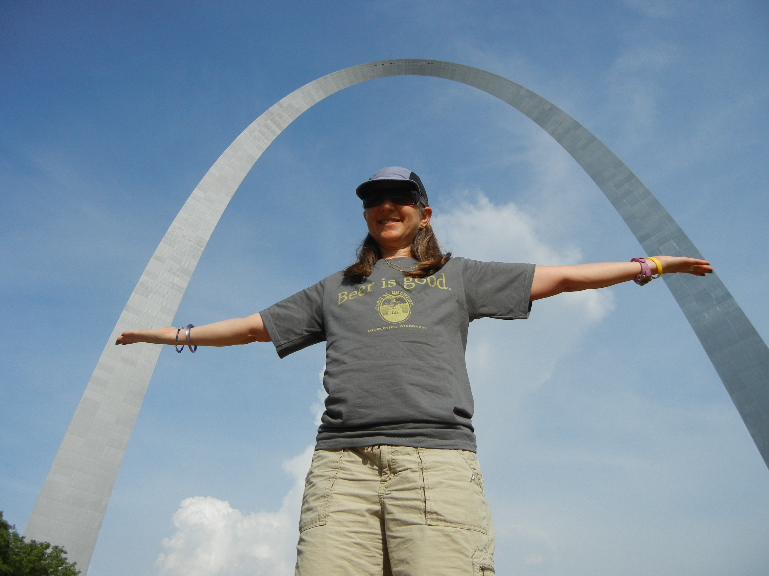 Even though it’s 100 degrees, our Hampton Inn is right across the street from the arch, so we walk over for photo ops, and there are plenty of them.