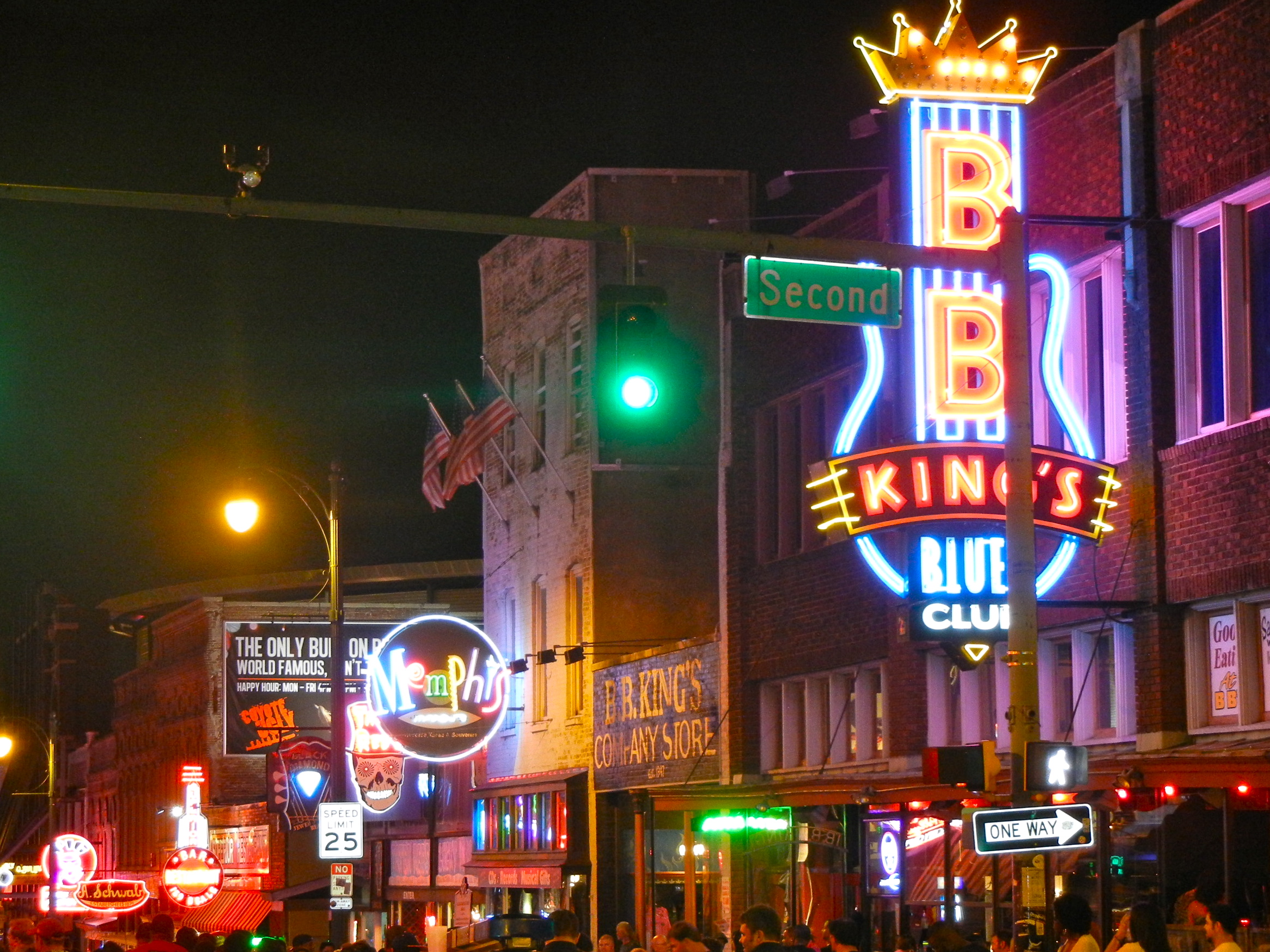 After dinner, even though we have little life left in us, we drive down to Beale St., the home of the blues.