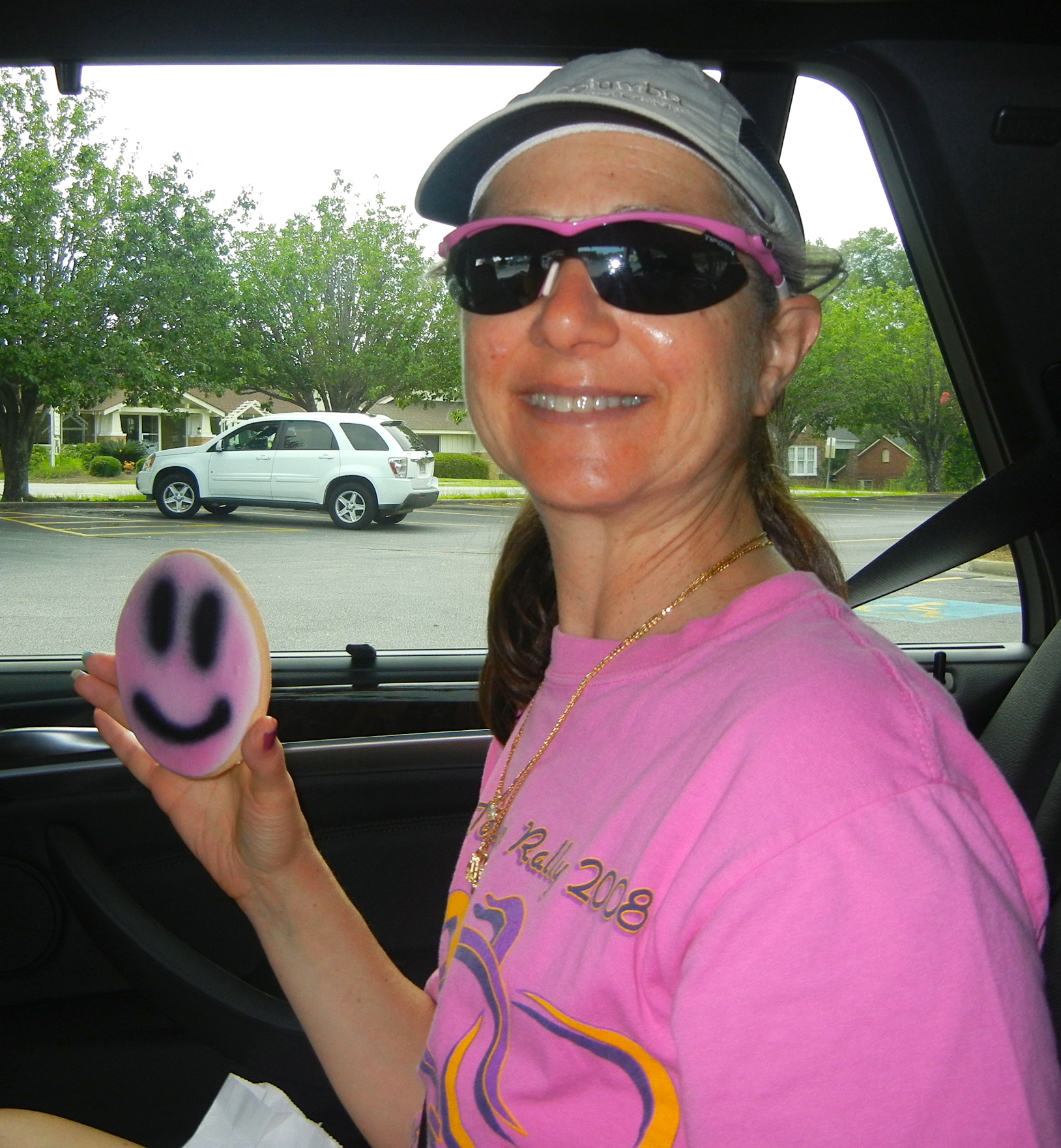 It’s one of the nicest celebrations we can remember at the end of BRAG. On the drive back to Cordele, we stop in Douglas so that we can hit Holt’s Bakery one more time for an award-winning dessert. As you can see, Eve orders her food to match her outfits.