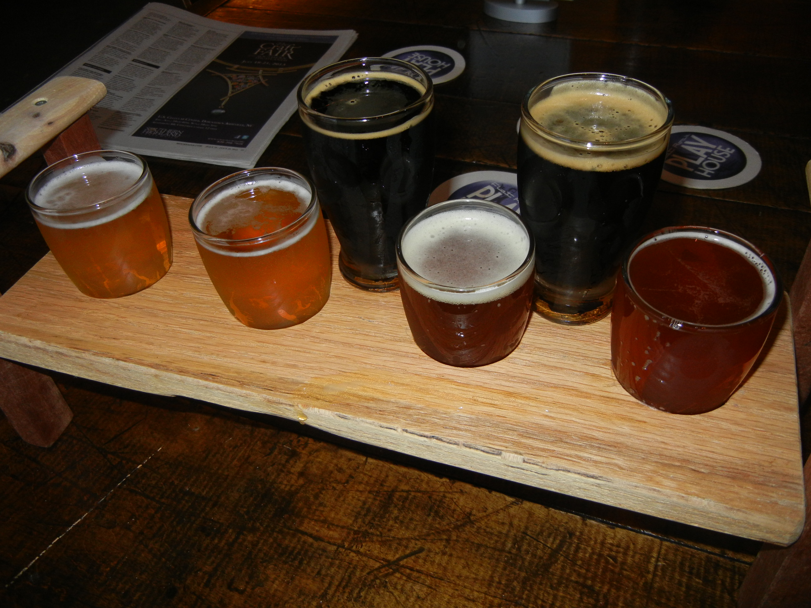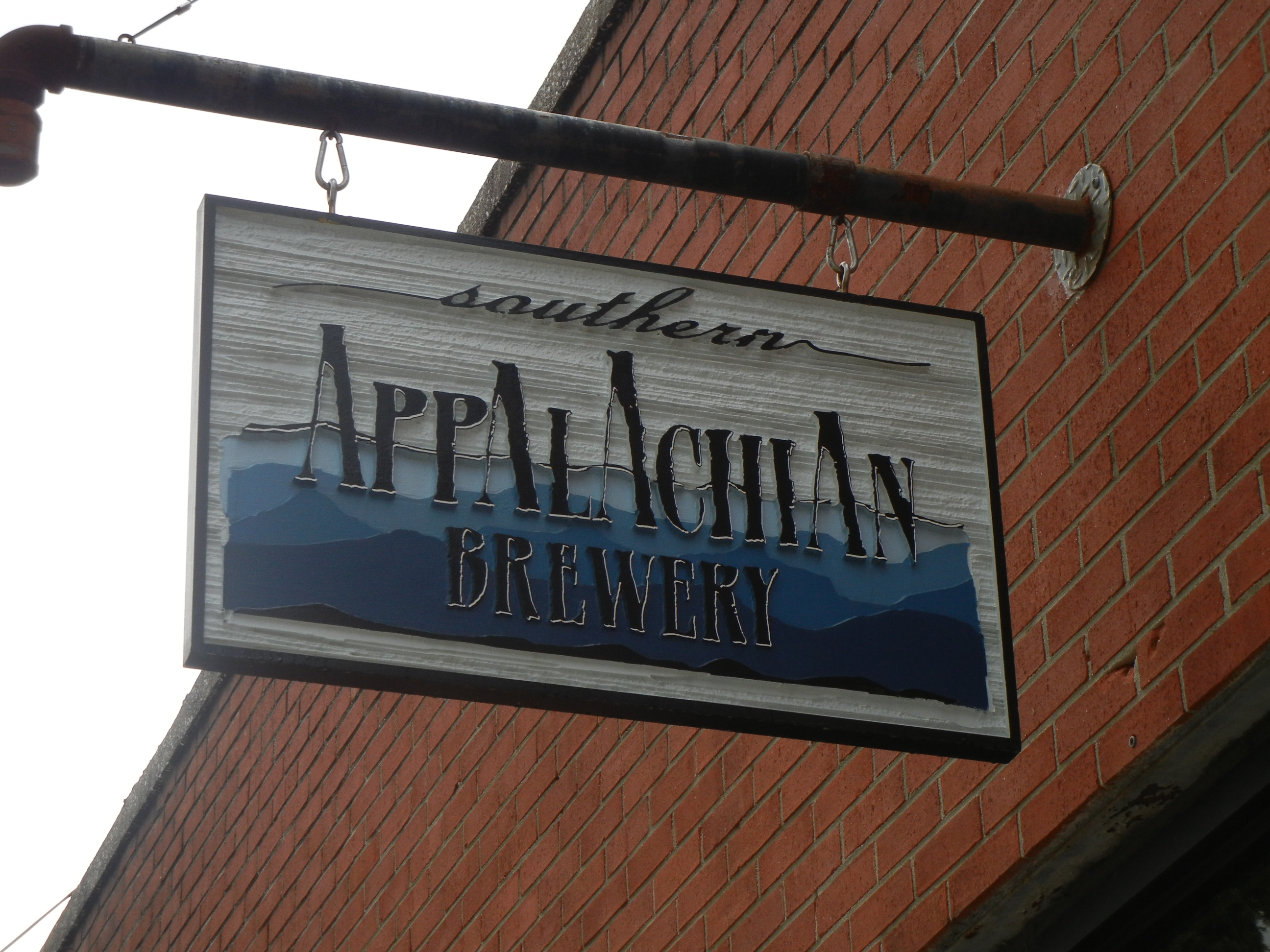 The Southern Appalachian Brewery is a small operation in an industrial area. We get the flight and taste six beers.