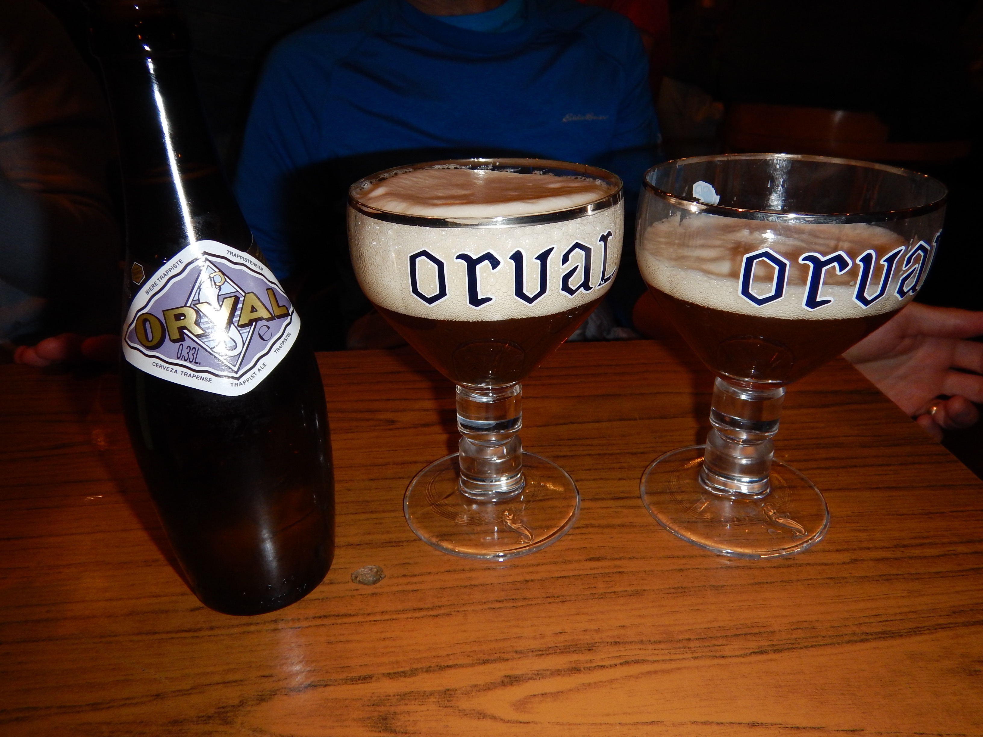 We are 16 soon to be very happy and very chummy people who share only a love of beer. We will visit 5 obscure pubs and taste 8 (mostly high alcohol) beers during a 4 hour period. Most of us are having such a good time that we end up having dinner, and after dinner drinks (really – more drinking?) together because we just don’t want the fun to end. But I digress, let’s talk about the beers. Our first beer is Orval, this is a Trappist beer with an alcohol content of 6.2%.