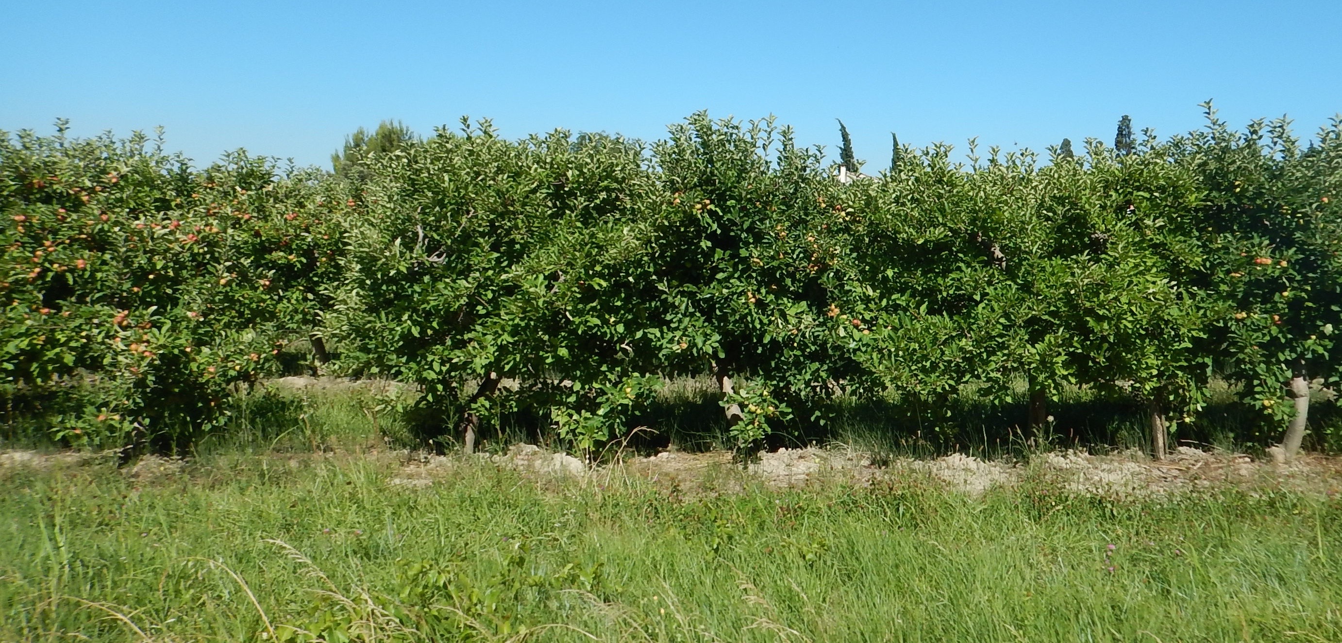 After 2 glorious weeks at our villa near Vaison-La-Romaine it’s time to move on. We pack up the minivan (Clampett-style) and head about 50 miles southwest. We are in Comps, near the intersection of the Rhone and Gard Rivers. The first thing that stands out is that it’s flat here. The landscape is completely different. We have left the hilly, lush and abundant vineyards and caveaux of the Cotes du Rhone wine region.  Now we are smack-dab in the middle of a region filled with fruit orchards.