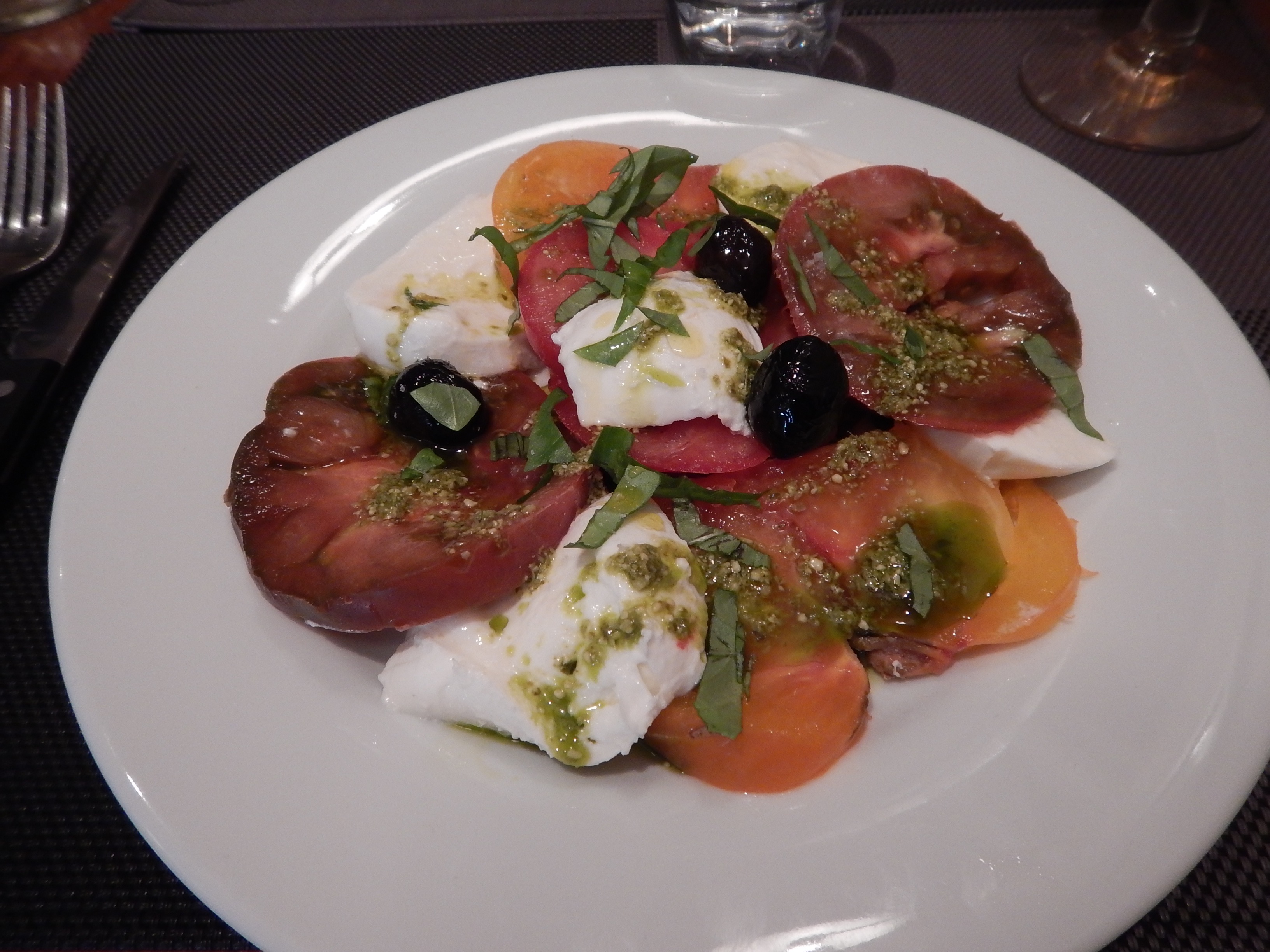 It’s tomato season and the heirloom tomatoes are gorgeous.  We split a tomato and burrata salad for our next course.