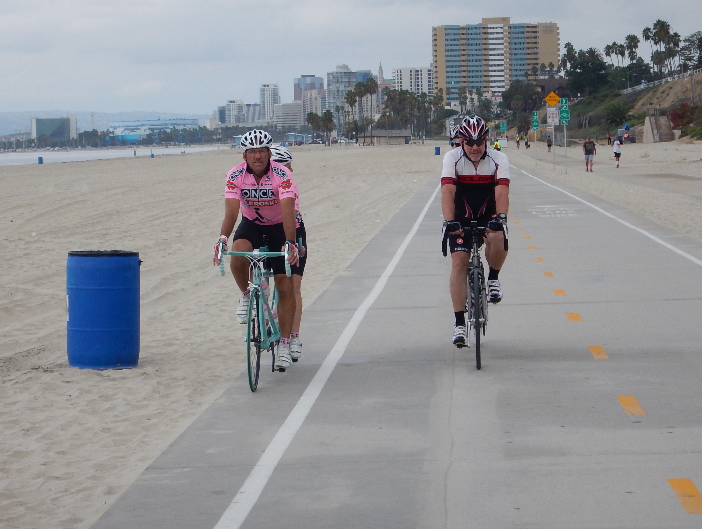 They were kind enough to organize a spur of the moment Southern California Team Tandem Ride for us on 10/18. We had a turnout of 3 and a half bikes. A stoker sickout left us with the half, and in the first few miles of the ride, Jon Gerber realized he wasn’t feeling well enough to continue, so we became three. We enjoyed an intimate, fun ride from a park in Newport Beach, north up the coast to Polly’s Pies in Belmont Shores.