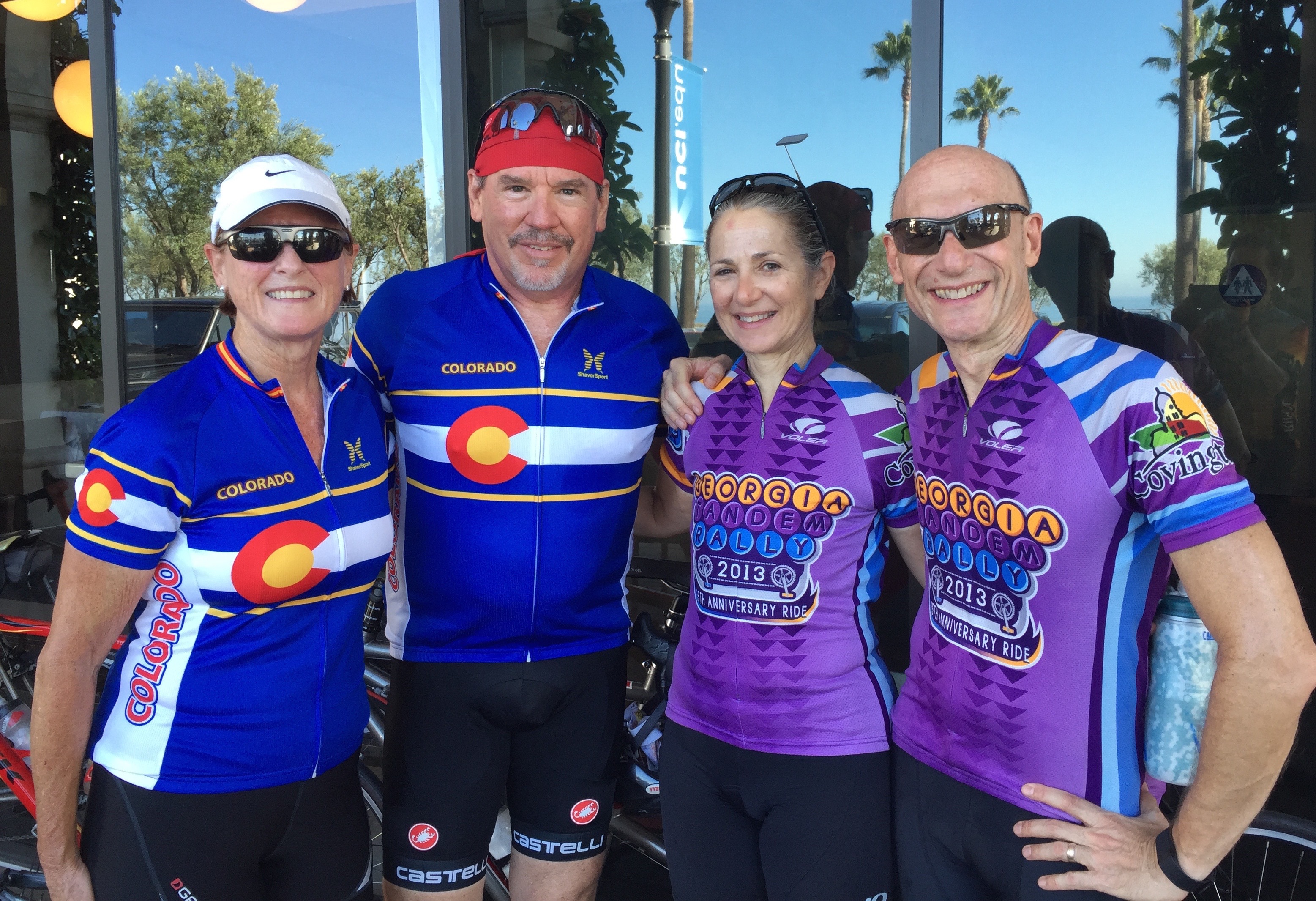 We don’t mind riding alone. Of course, when you are on tandem, you are never really alone! Admittedly, it’s always more fun riding with other tandems, and we were thrilled for the opportunity last Sunday. One of our (new for 2015) GTR couples (thanks Don and Teri) hooked us up with their pals here in the OC.