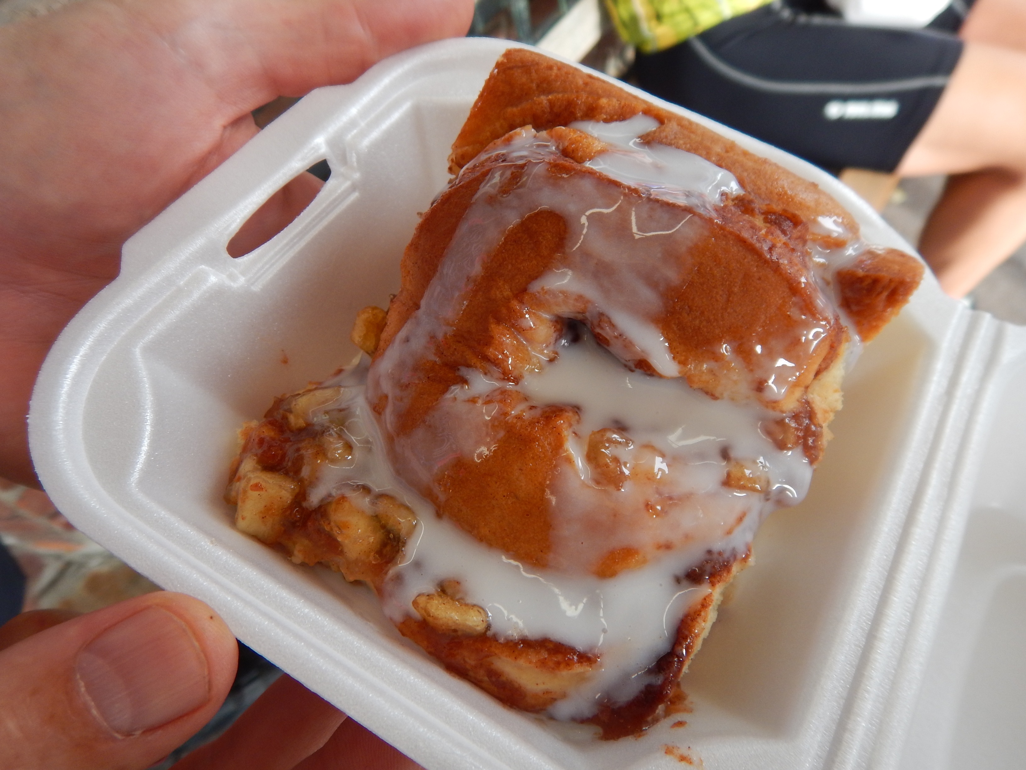The icing is melty because it’s warm! Lots of yum here, and we are glad we share this sweet delight.