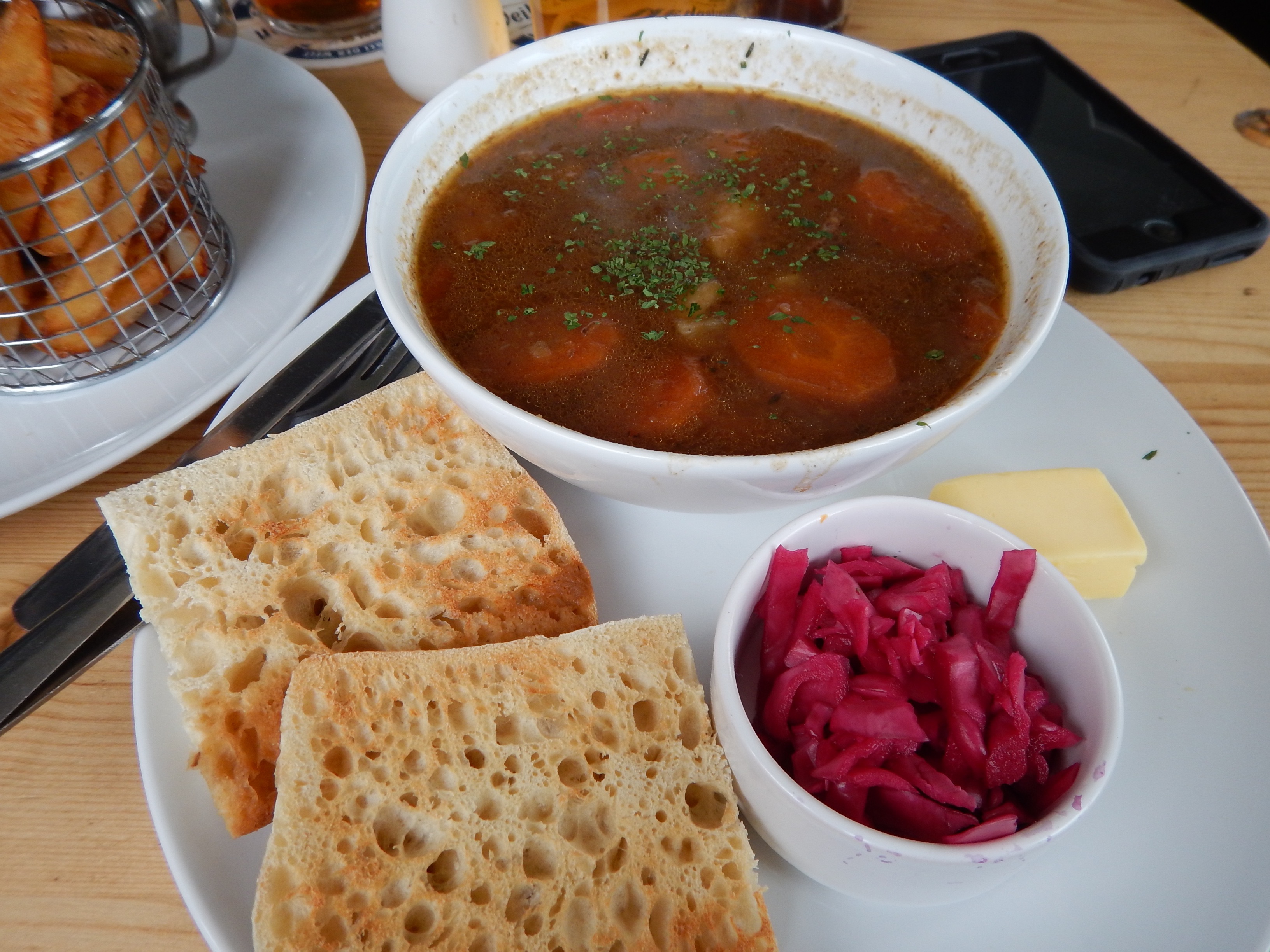 The food complaint is that everyone is serving just about the same thing. Fish and Chips with very bland fish in huge portions, pies which are usually yummy pastry filled with little morsels of food, or borderline overcooked burgers. For the most part, unless you try the Italian (we did 3 different times) or even the Chinese (which we had in Liverpool) your choices are pretty limited.