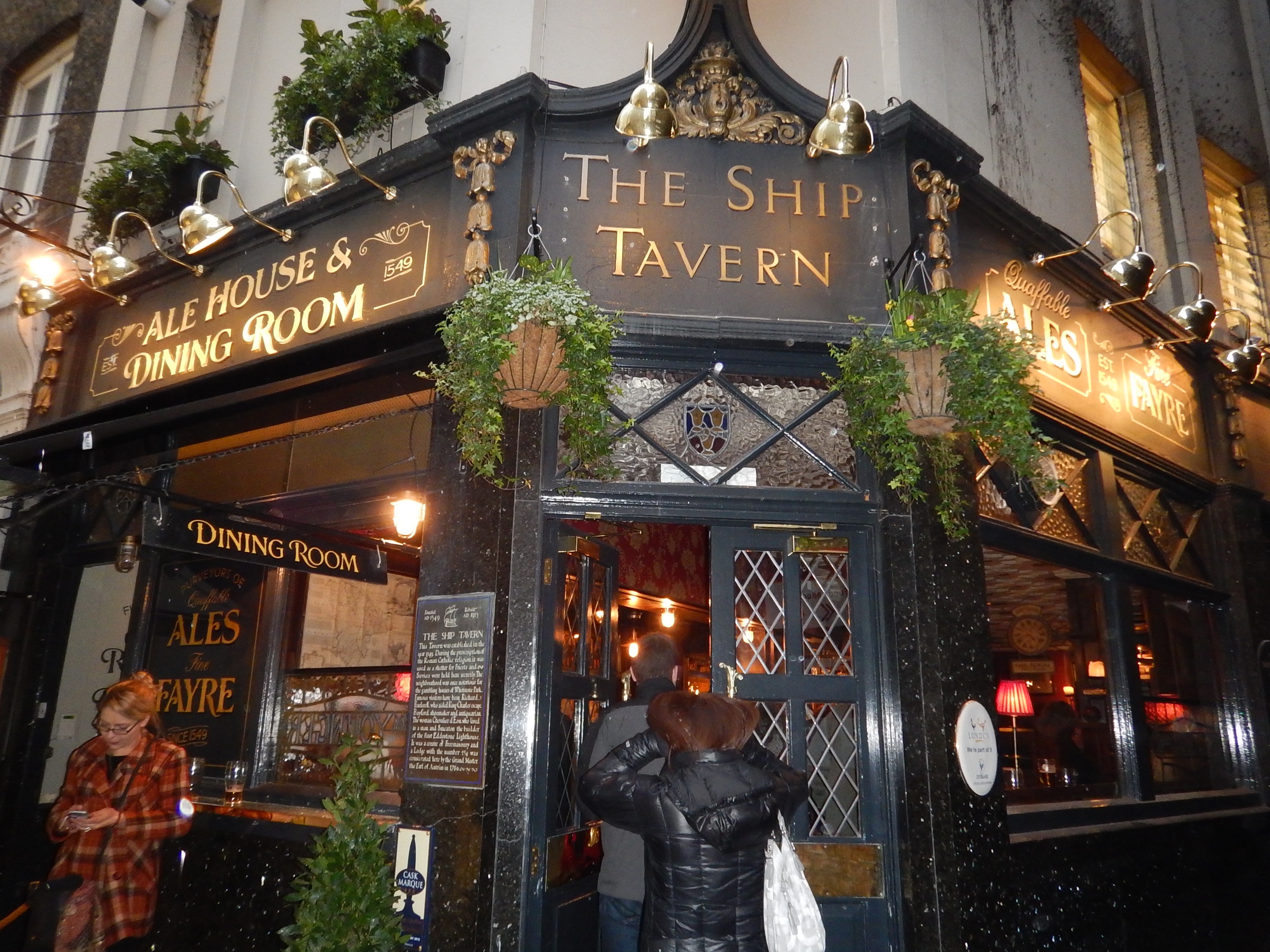 And our winner is a dinner we had in the upstairs dining room at the Ship Tavern in London.