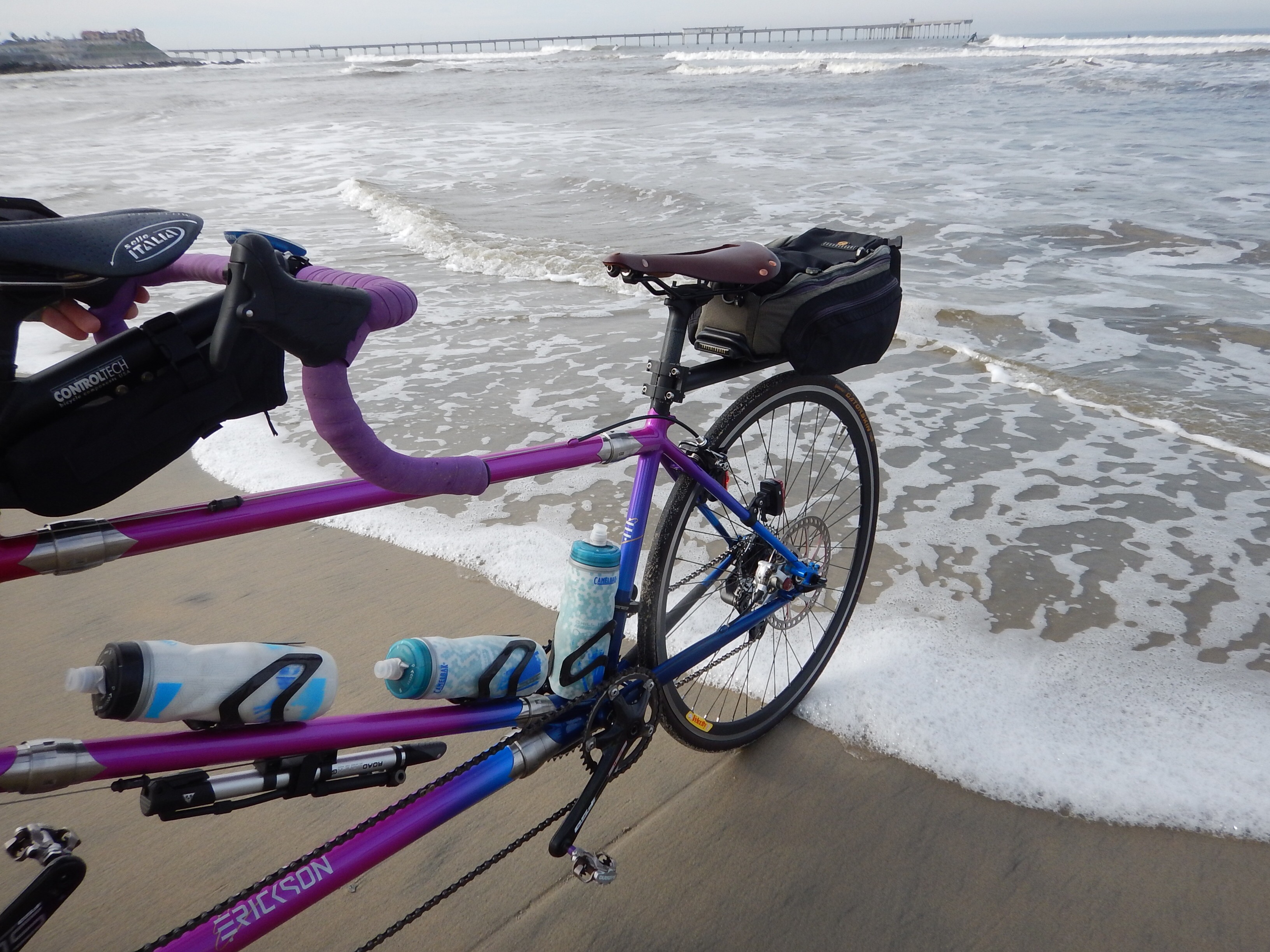 25 riders are about to leave San Diego, but first we must dip our rear wheel into the Pacific Ocean.