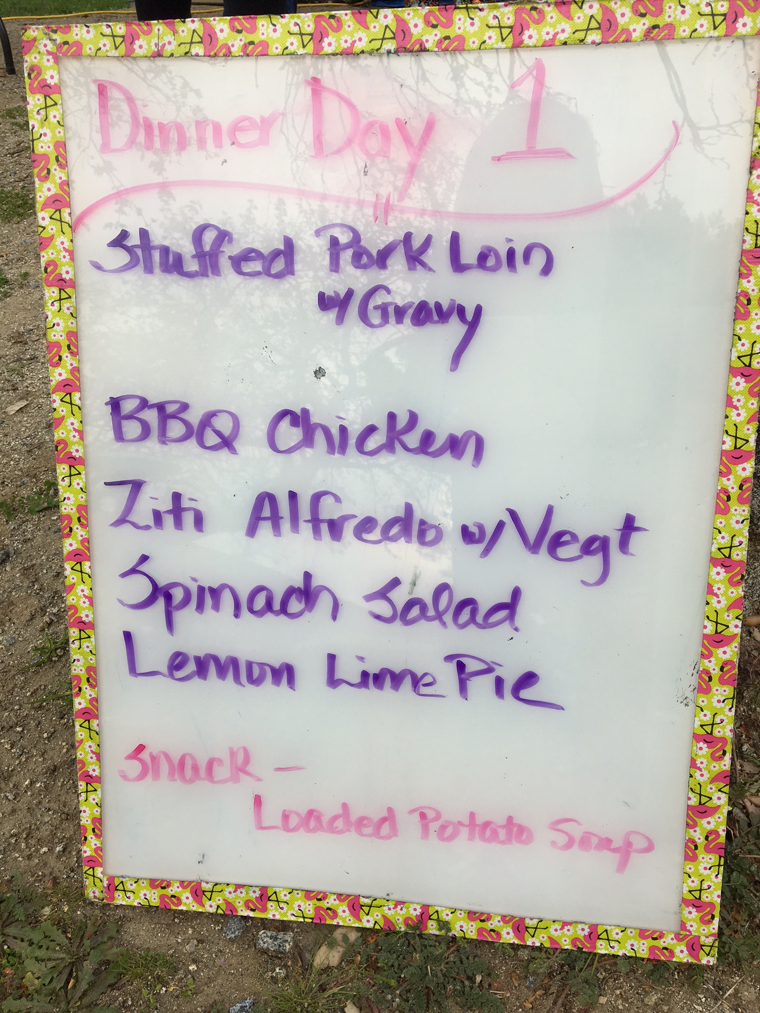 Speaking of camping, we have successfully taken a shower and have figured out how to open the flap on Tent 6, our home for the next two months.