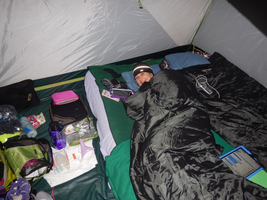 It’s our 34th wedding anniversary and we celebrate with a bike ride up to about 4000 feet. Before we talk about Day 2, we have this just in–exclusive, breaking news. Here is a picture you will only see here, the view inside Tent 6.