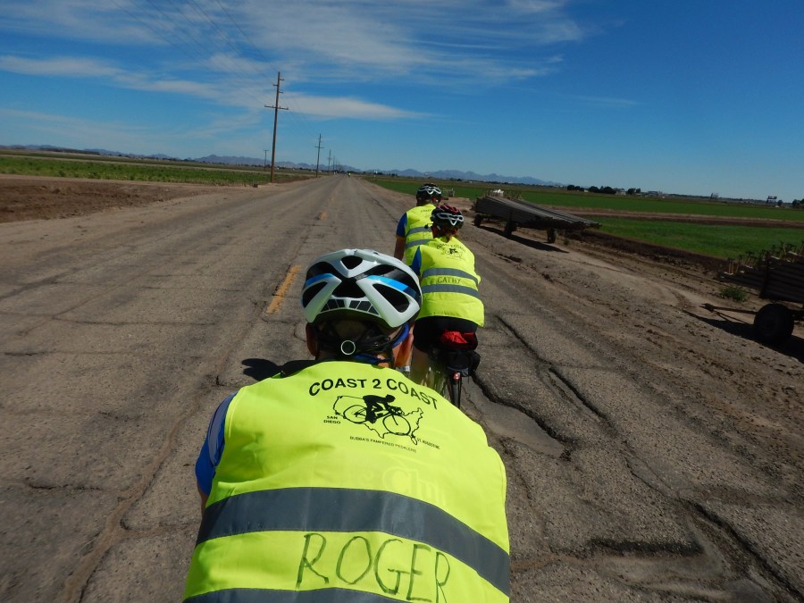 We leave Calexico with a tailwind, allowing us to make really good time for the first 25 miles.  Today we ride with our Canadian friends Peter and Cathy, who we first met in France in 2001.