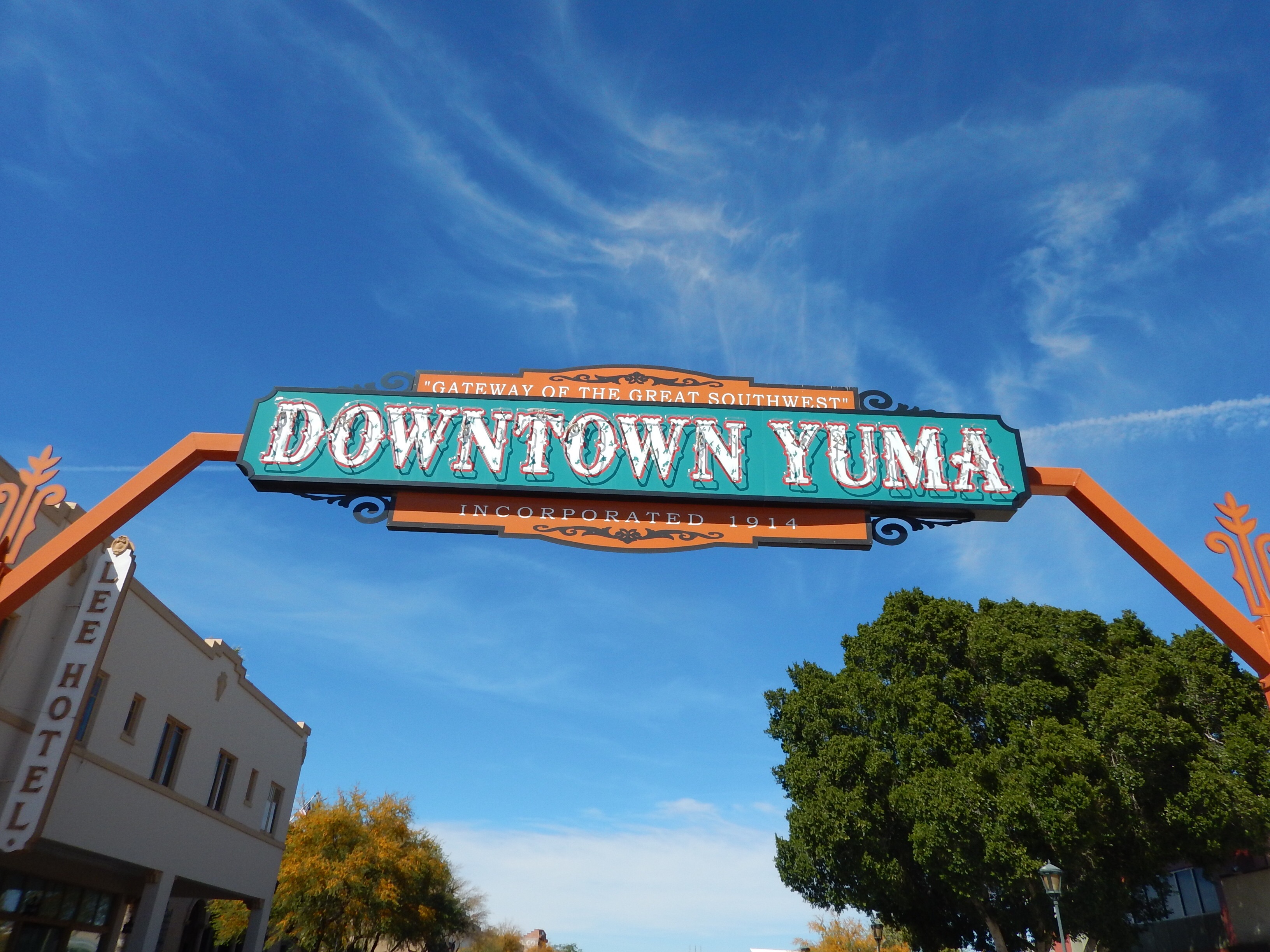 Welcome to Arizona!  There is no sign.  Oh well, maybe when we hit New Mexico we can turn around and see the Arizona state line.  Historic downtown Yuma is quaint.