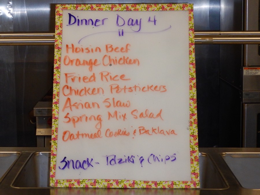Before we go, a look at tonight’s menu.  It’s Asian night–authentic and delicious!