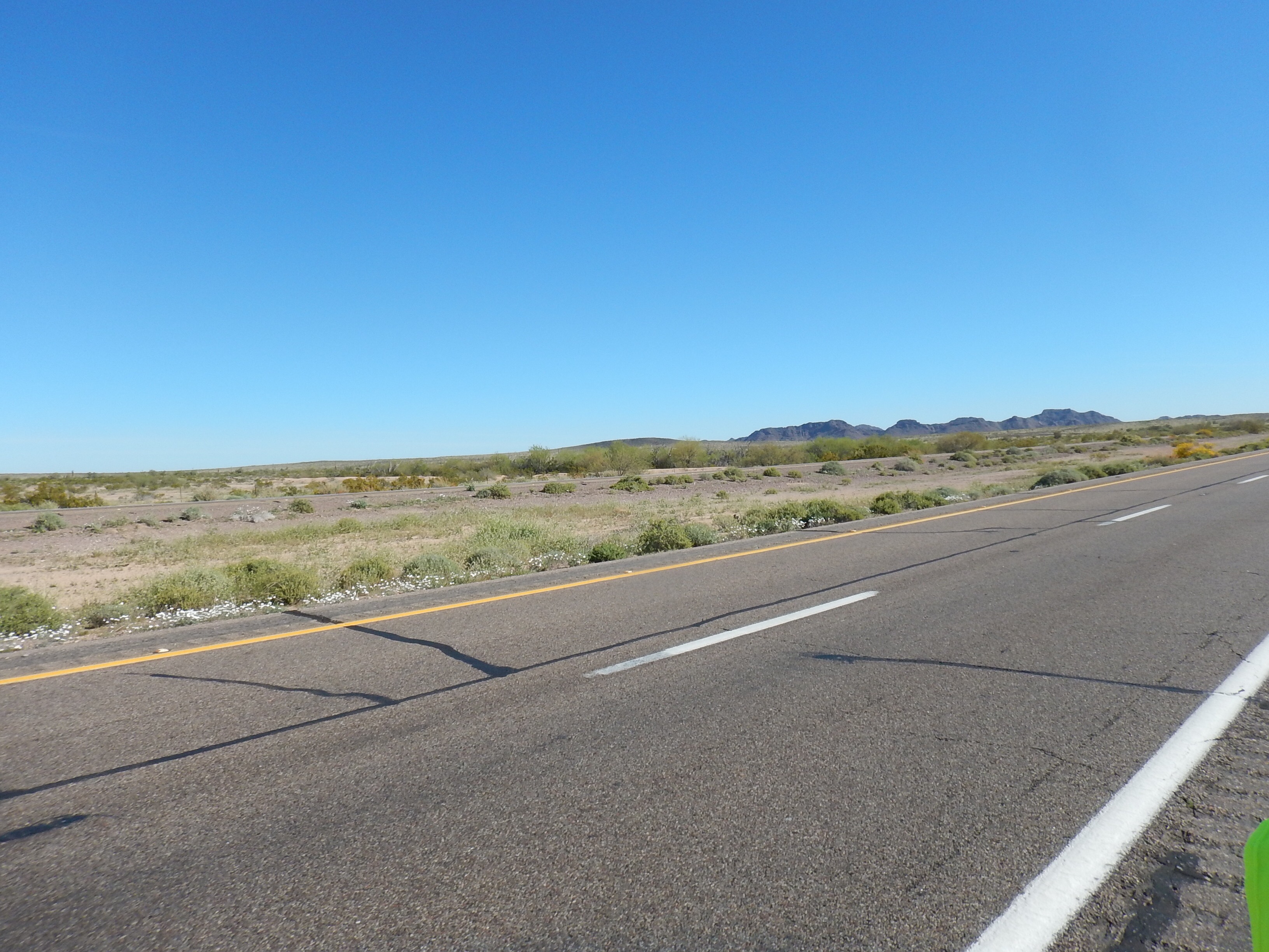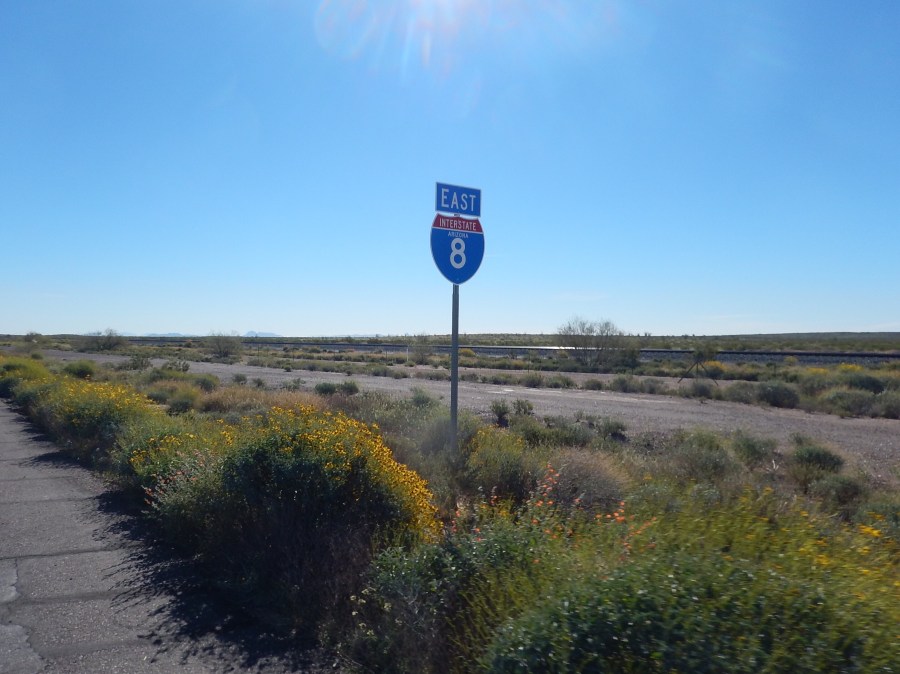 Hmm from I8 to maybe I10 tomorrow?!?! Nice that you have flowers in that vast dry land. Love the updates and you are still smiling.😎😎
