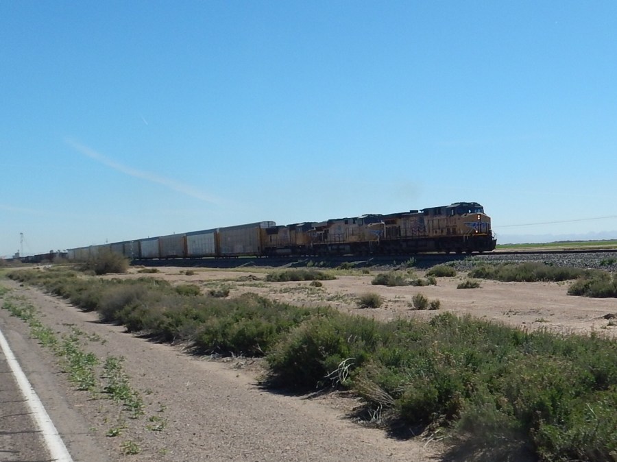 We heard them every 15 minutes or so from our campsite last night, and we see quite a few very long double stacked trains along our route.
