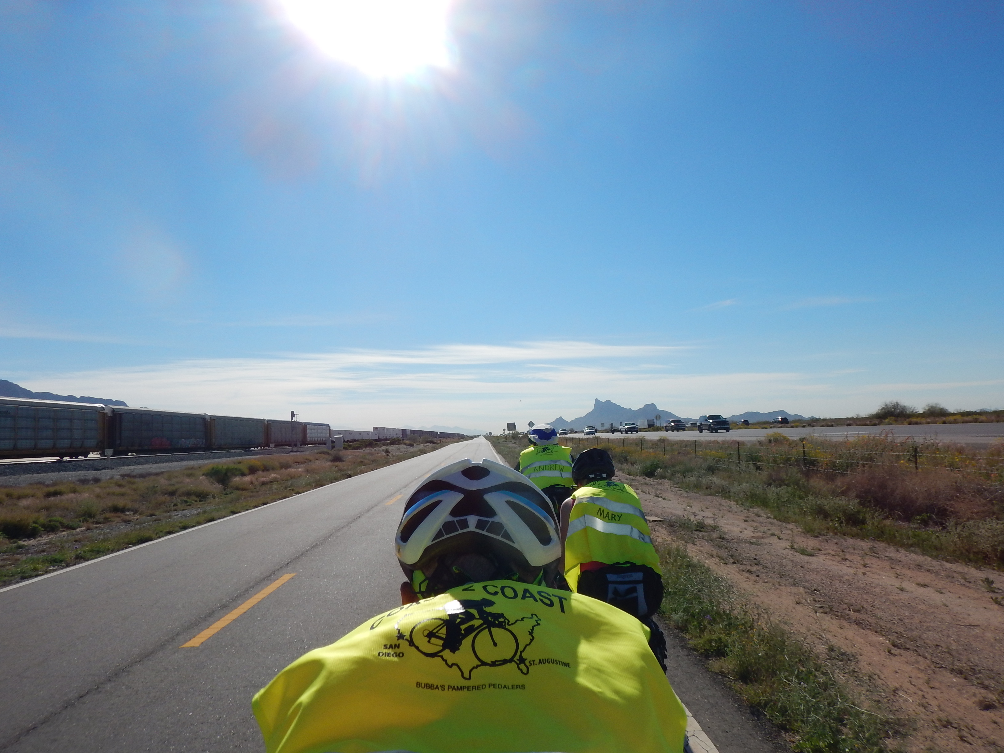 This first week of our Coast 2 Coast trip was 8 consecutive days of riding.  We are now in the magnificent Catalina State Park for two nights.  We get to rest our bones, butts, and bodies while enjoying the Saguaro and the views.
