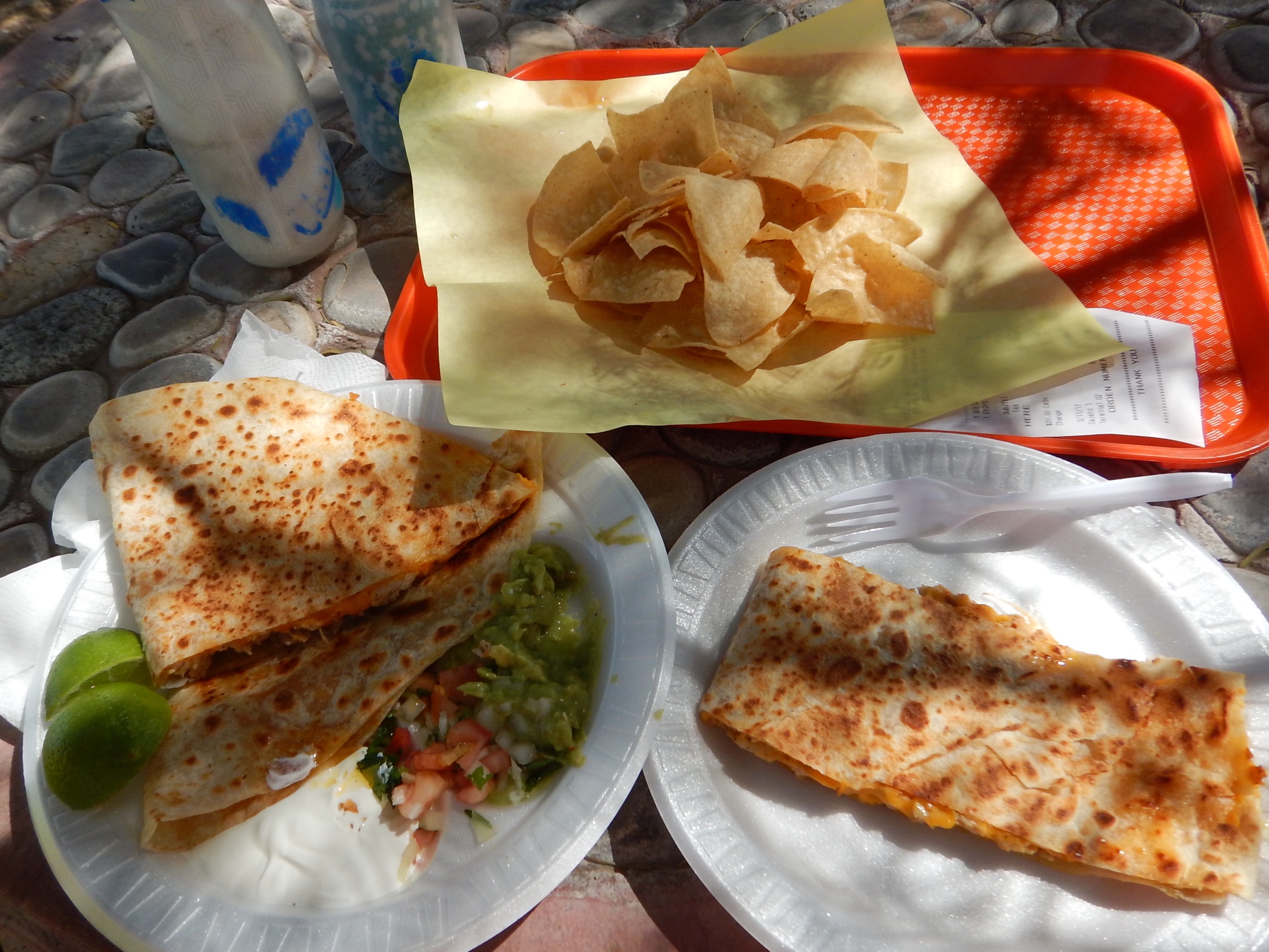 Lunch at Nicos Mexican Restaurant featured the largest quesadilla we have ever seen.