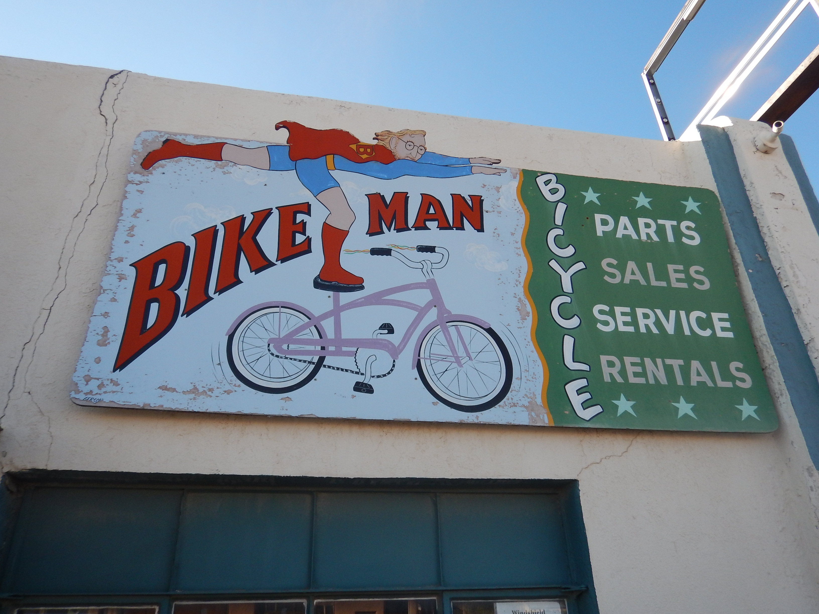 beautiful tranquil mural, Bike Man flying along in his cape…and your own Bike Man,