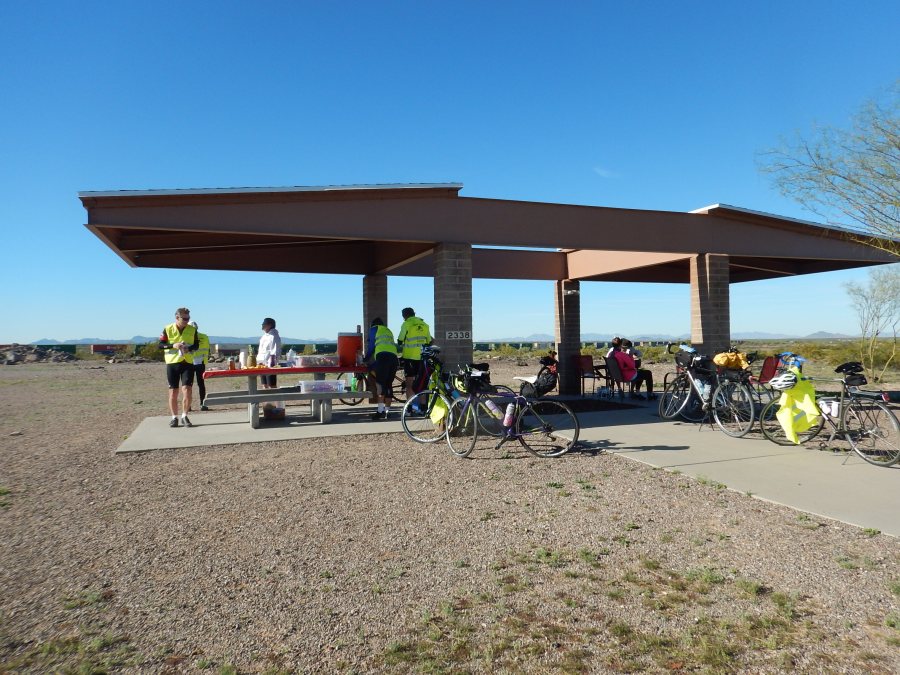 There is usually a SAG stop with water and food about every 20 miles. Even if you ride alone, you meet up with part of the group at these stops.