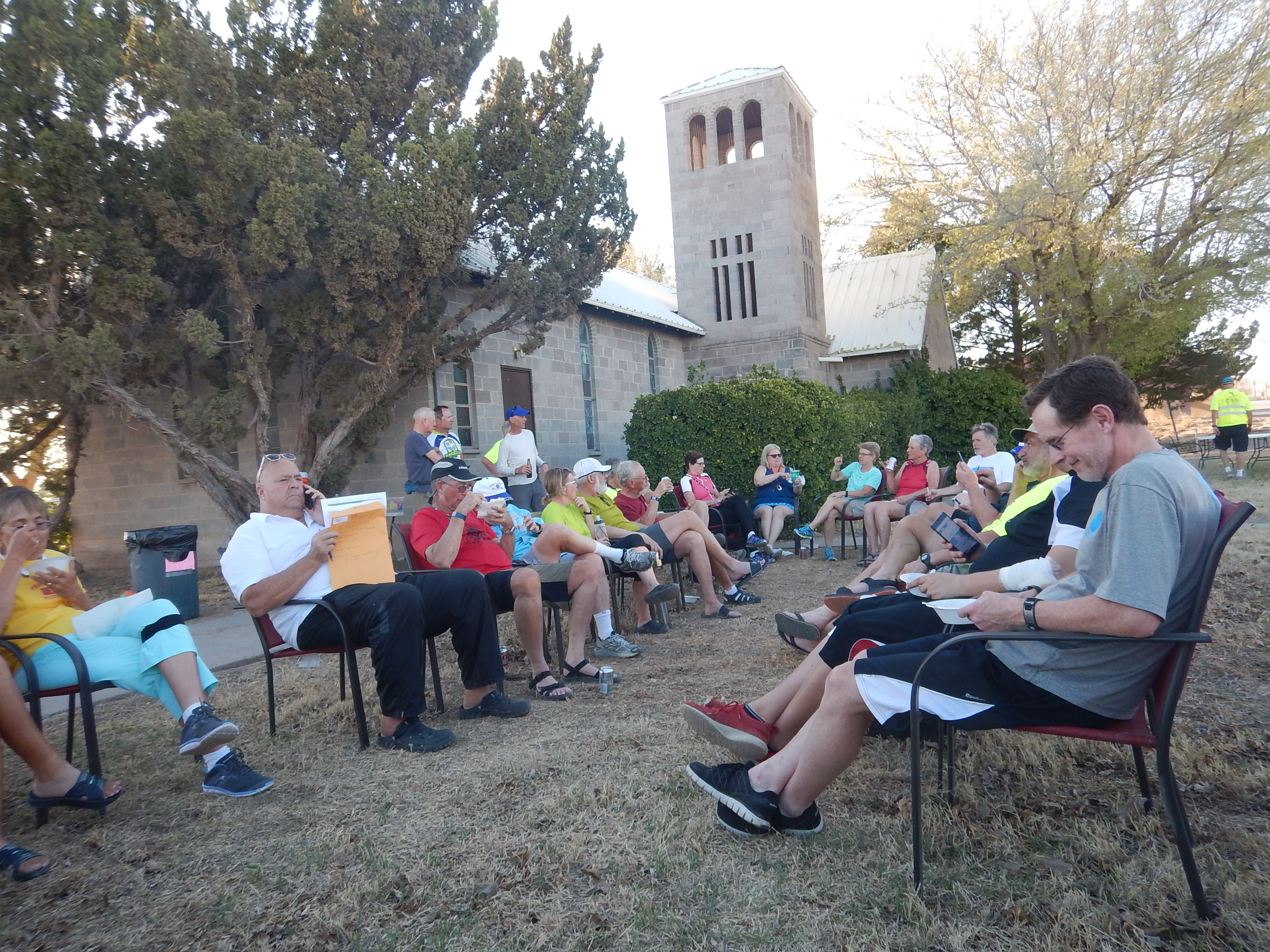 There is a shaded area with chairs set up for us, called “the pampered zone”. We have cold drinks and snacks available to hang out and discuss our ride.