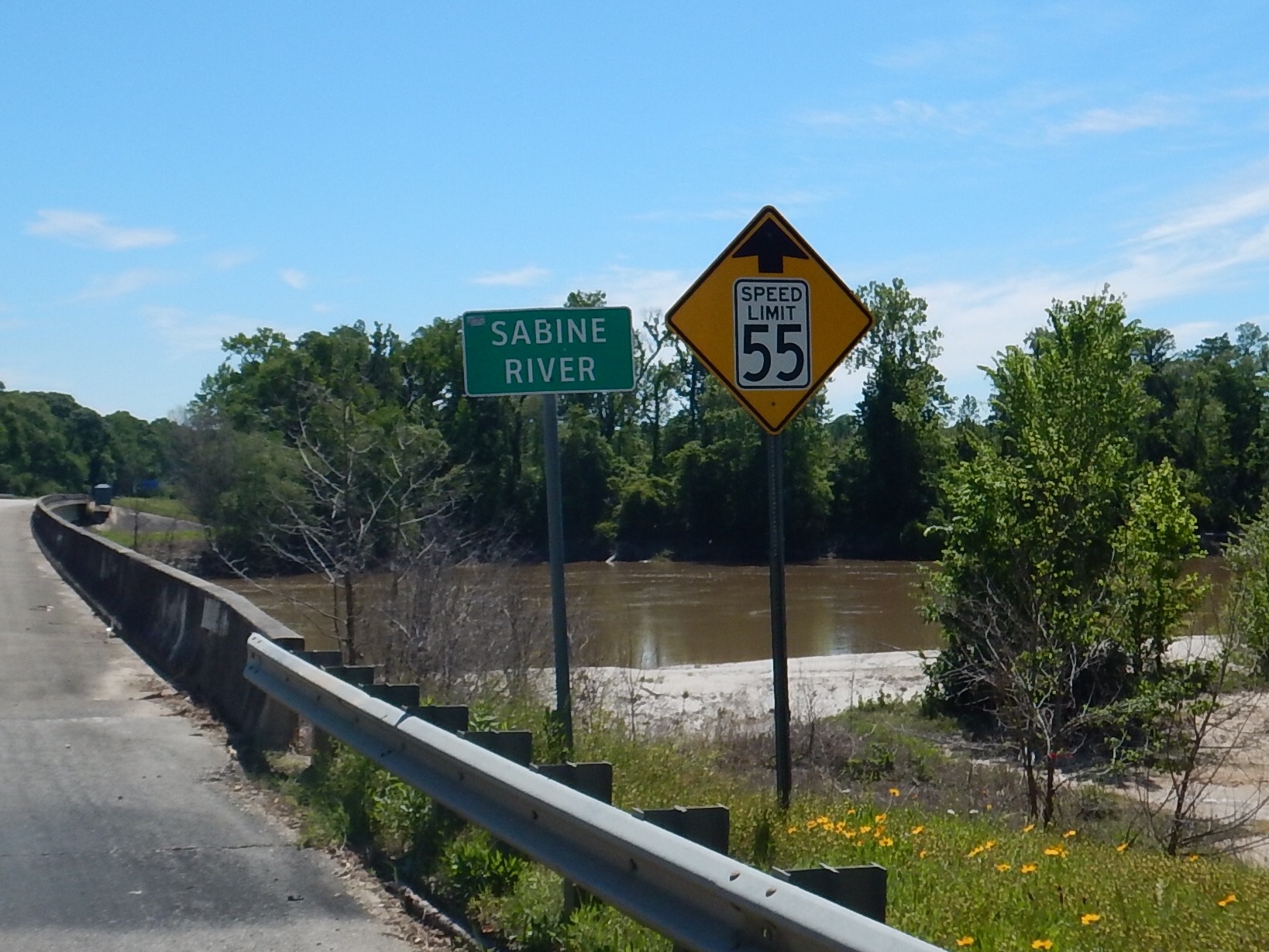 48 miles: Cross Sabine River. Almost there.