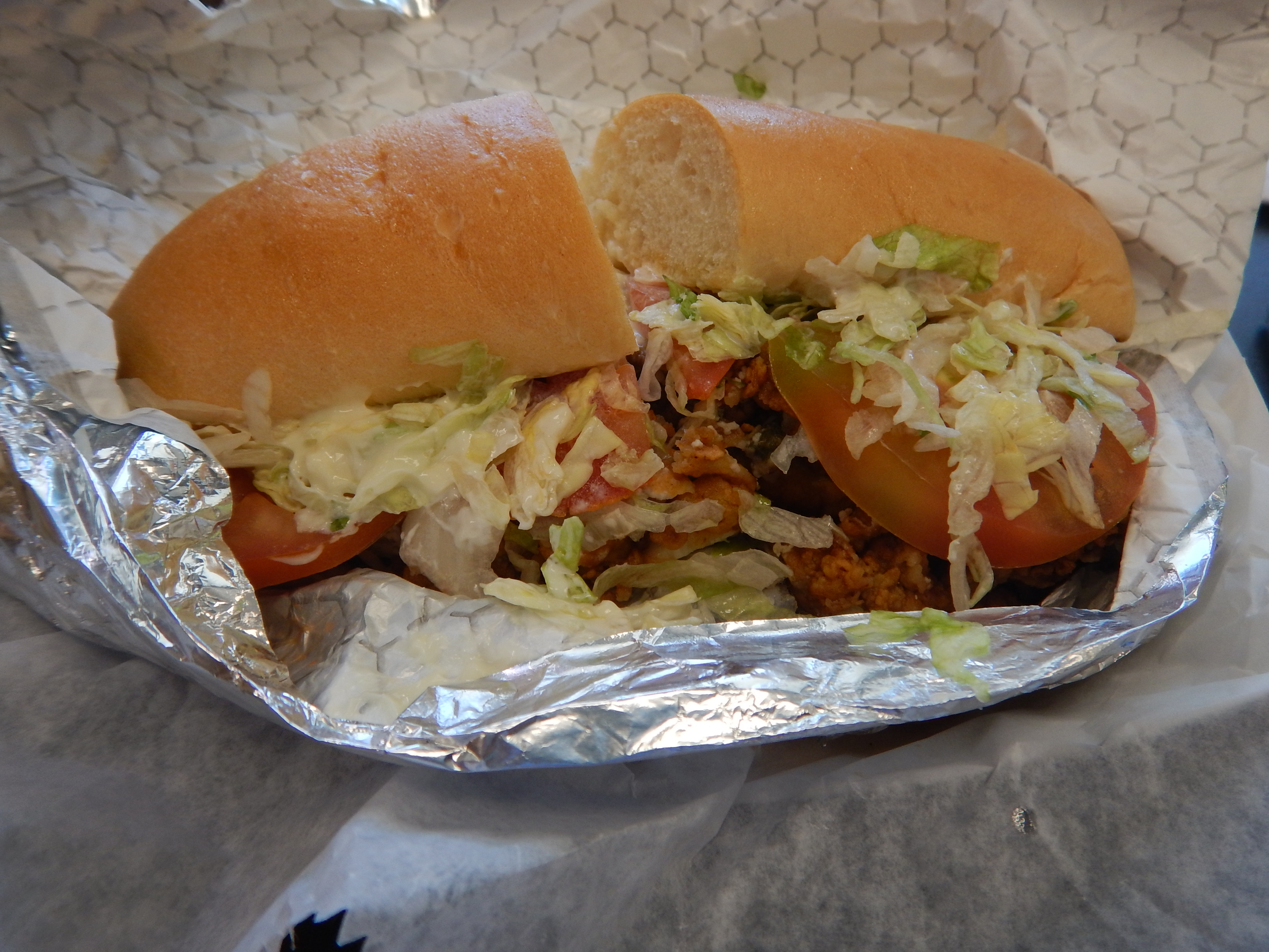 Here’s some shots from a recent lunch. First, the oyster po’ boy.