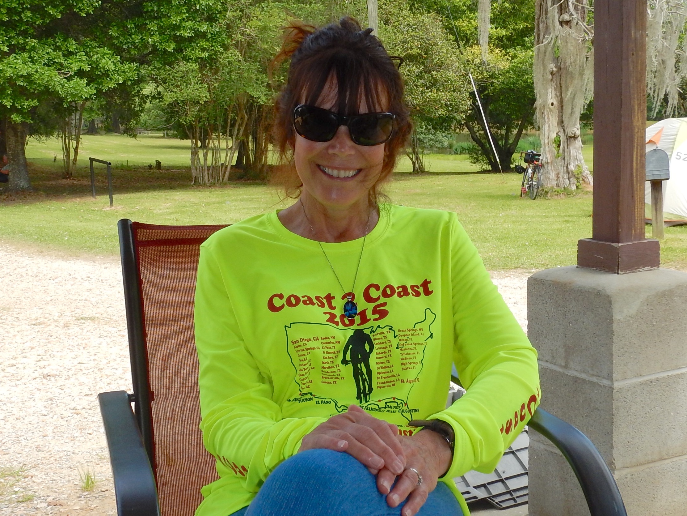 She is the advance person at each overnight location and manages the Wolfpack.  She is the only person (other than Bubba) who has been on every C2C tour, riding in the first one (in 2010), and working every one since then.