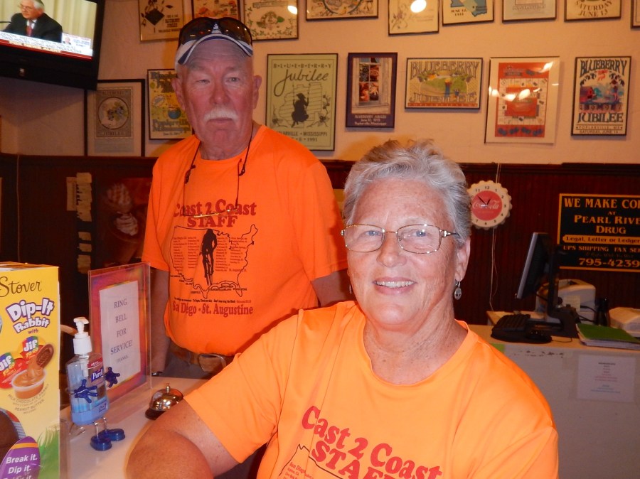 It is the staff (mostly volunteer) that make Bubba’s Coast 2 Coast tour an amazing experience. Most of them are couples, and except for the Wolfpack (the muscle), all have ridden their bikes across the country with Bubba – it’s a requirement! For our small (25) group of cyclists for this crossing, there are 13 staff members. We are most definitely pampered, and perhaps a bit spoiled.  This staff is versatile and incredibly flexible. They wear many hats during the trip. They share their experiences, they encourage us, they drive SAG, they do our laundry…we love them!