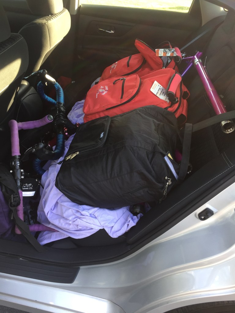 We had one flat on the whole trip and we found it in the morning before the ride started, which is the best time to change one. Additionally, the chains were oiled and the bike was washed off every 4-5 days. That was one low-maintenance tandem. In case you were wondering how we got it home, the bike can fit in the back seat of a Nissan Altima rental car. The S+S couplers have paid for themselves many times.