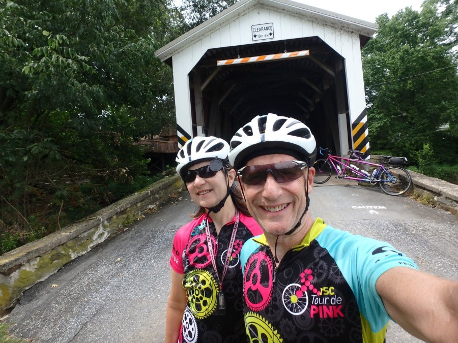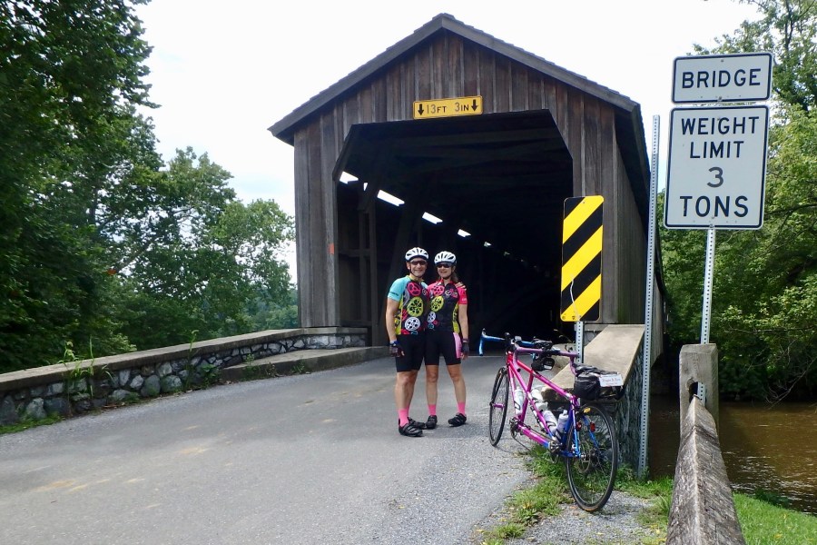 Our first ride was a 50-mile covered bridge loop. The route was “advertised” as having 6 covered bridges. We saw only 5, but we aren’t complaining. We think one bridge may have recently washed away.