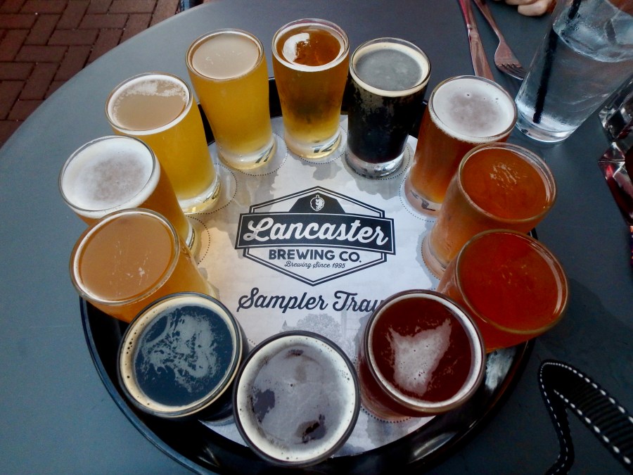 We also aren’t complaining about one of our favorite breweries. The Lancaster Brewery is less than half a mile from our hotel (not a coincidence). It’s hard to beat a sampler with a dozen 4 ounce pours.