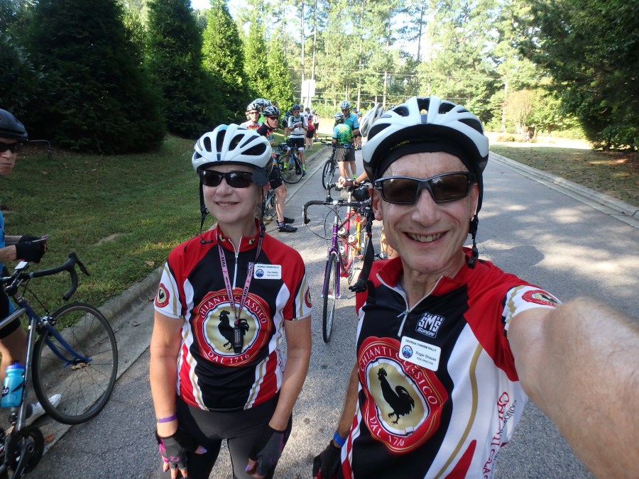 On to Salisbury, a small community about an hour north of Charlotte where STR is being held. It’s the home of Cheer Wine and Food Lion, and boasts an awesome Transportation Museum. About 65 couples spent an unseasonably hot fall weekend riding on lightly traveled roads. The terrain was mostly rolling hills, which we really enjoyed on our brand new Seven Axiom 007 tandem.