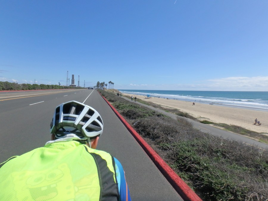 On a very clear day, on the Pacific Coast Highway, heading south from Seal Beach
