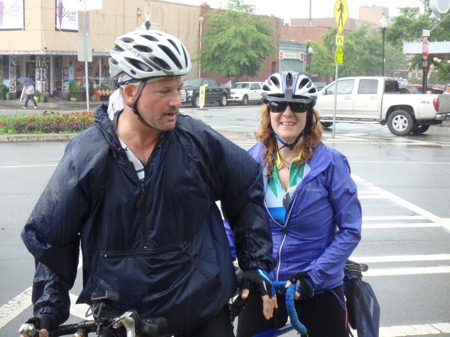 We had scheduled six days of riding, and our pre-tour group rode through (only) twenty miles of rain.  Luckily it was about 70 degrees so everyone was able to stay warm enough. Spirits were high, and there were lots of smiles as our teams rolled into Covington.