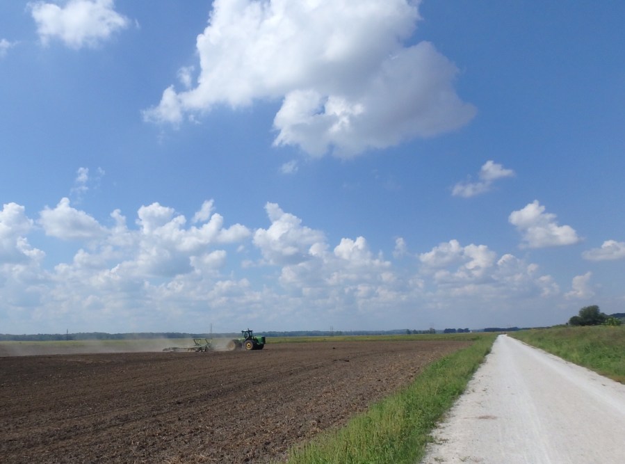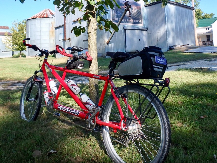 It’s a tank, weighing at least ten more pounds than our road tandem. The Katy is not paved. It’s a crushed limestone surface that is very hard-packed. Our tires are a bit oversized for this surface, but hey, the bike will roll over anything. It likes to get dirty, which is good because this is one flat and dusty trail.