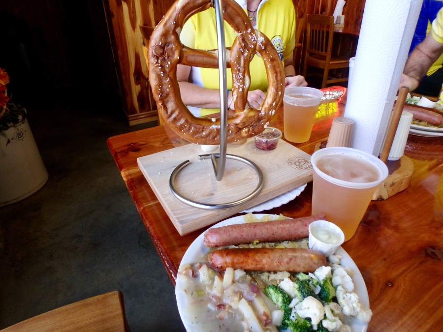 Pretzels, wurst and beer. We didn’t ride far enough for this meal.