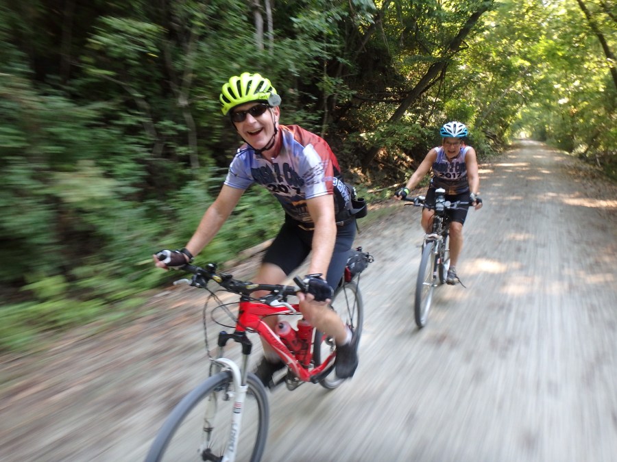 Andrew hurt his back early in the trip and can’t continue. They rode every mile of C2C in 2017, but the Katy Trail is too much for them in 2018. Just kidding. They are a lot of fun and we will miss them.