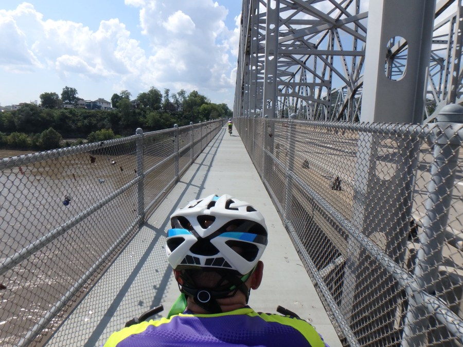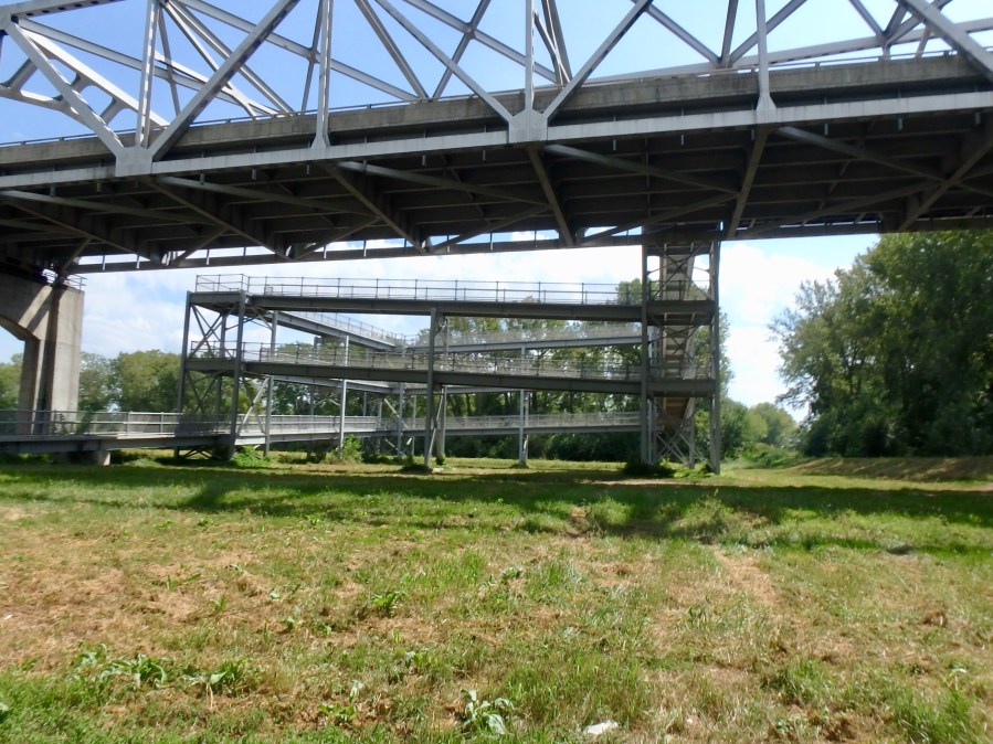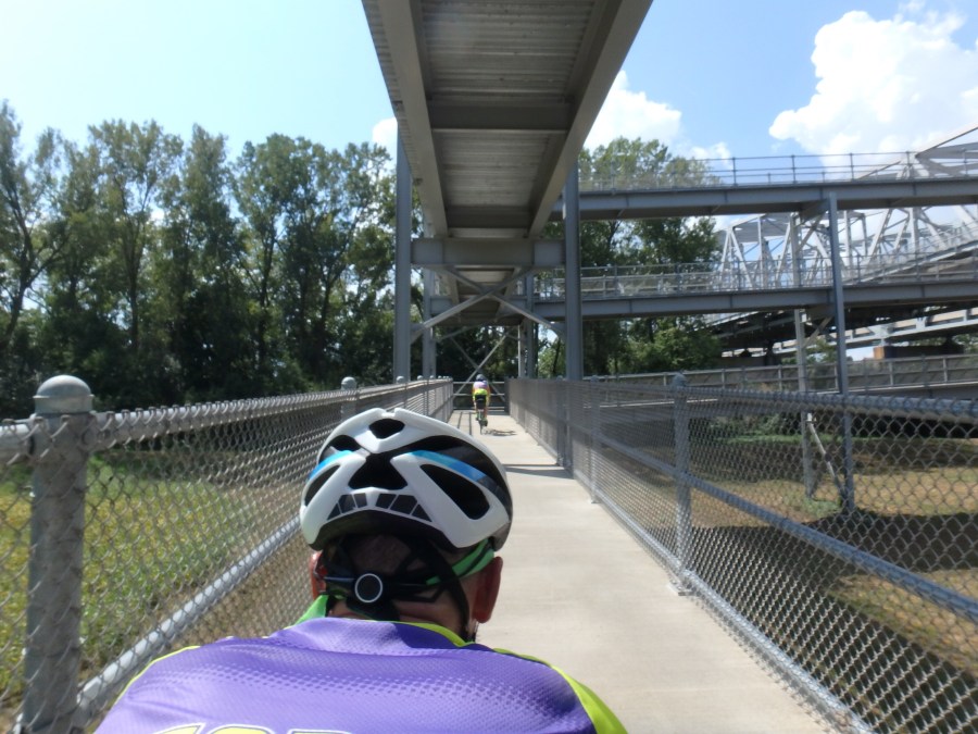The state capitol comes into view with about five miles left in the ride. It’s up on a hill so you can see it from all directions. Before you cross the Missouri again, you have to ride up this contraption.