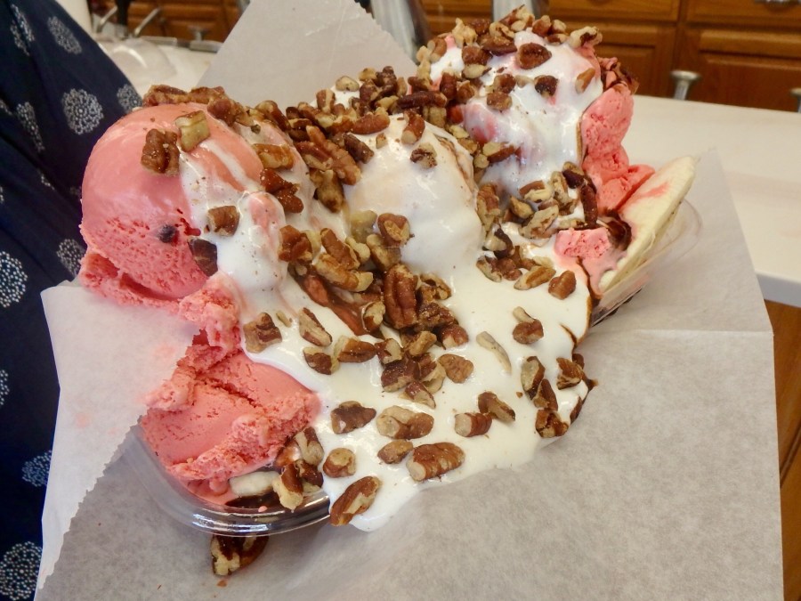 We did not order the banana split (six dollars!), but we know who did. It is our duty as reporters to include a picture of it.