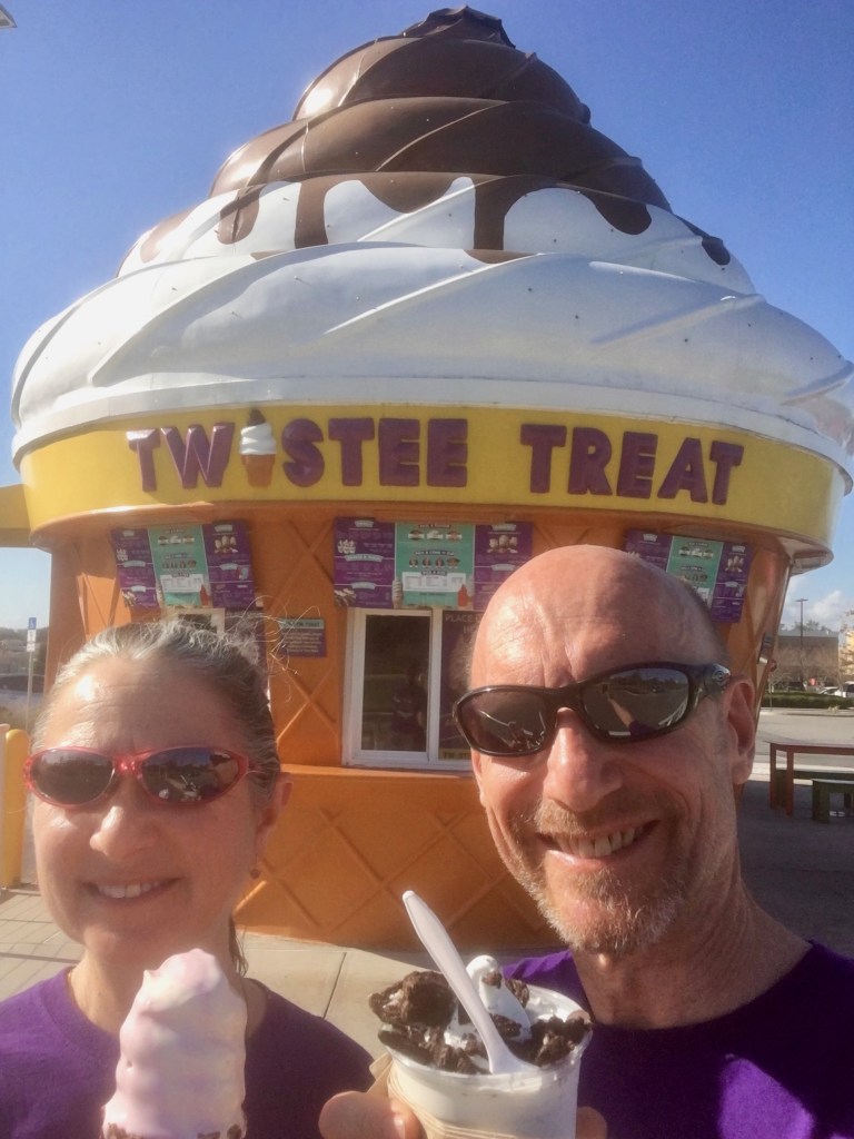 On our way to the trails, we spot an interesting ice cream store. Because of record heat and in the interest of research, we must investigate the offerings.