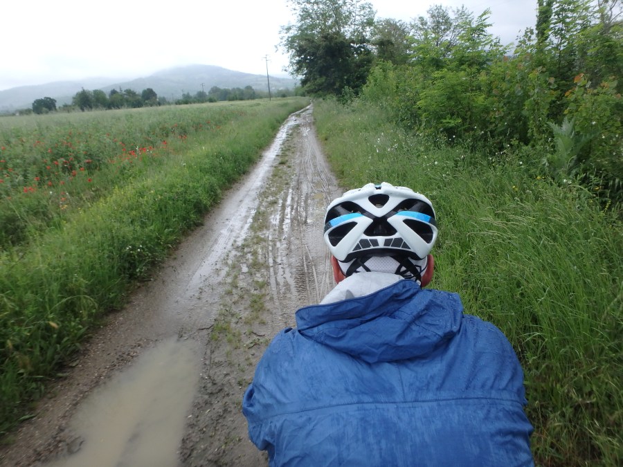 We arrived in Arezzo on Saturday and built our bike while rain clouds threatened and kept getting closer.