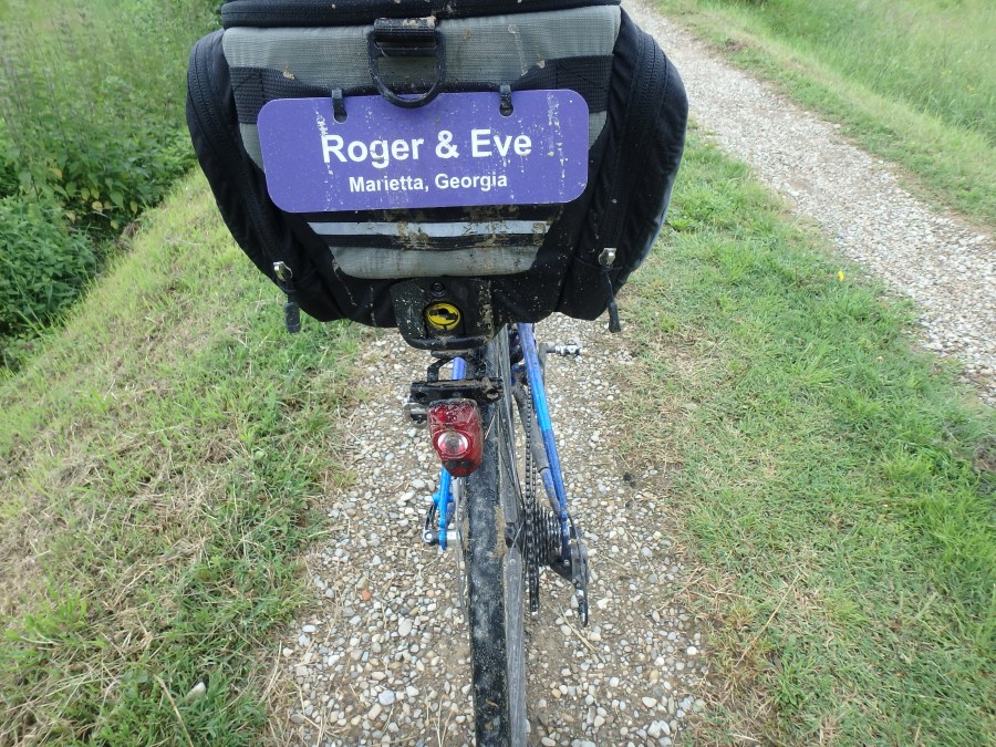 The rain continued as we approached the un-advertised off road part of the ride.  We never should have followed the group around the building and onto the walking path, which turned into an unpaved road with huge holes and puddles.